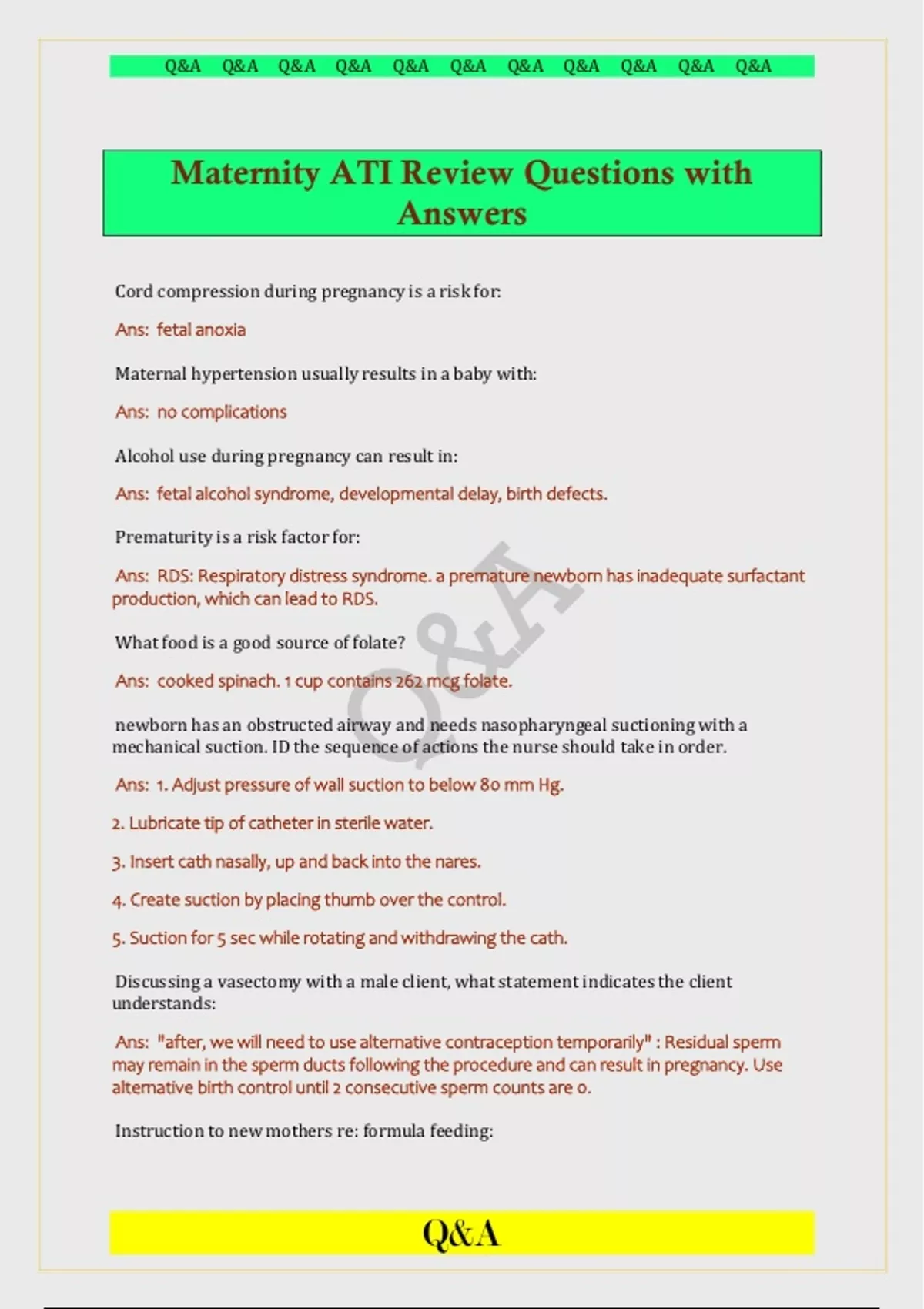 Maternity ATI Review Questions with AnswersMaternity ATI Review Questions with Answers