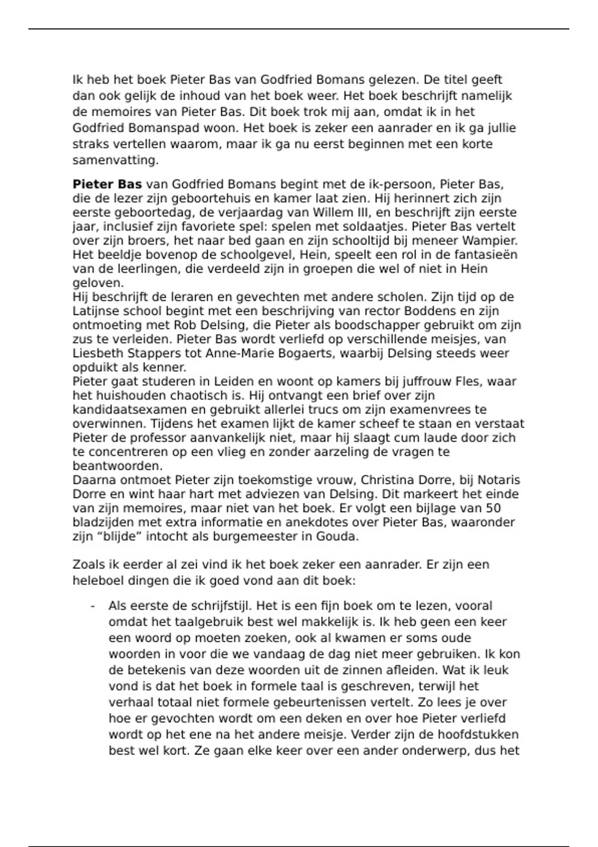 Ik heb het boek Pieter Bas van Godfried Bomans gelezen. De titel geeft