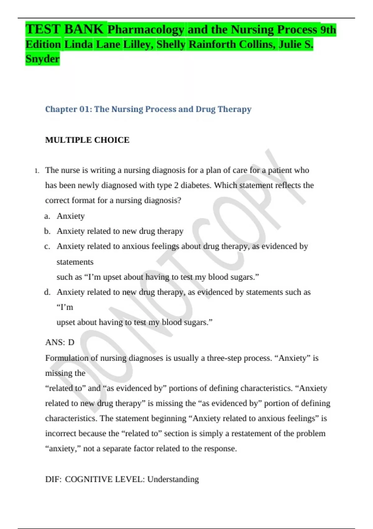 , TEST BANK Pharmacology and the Nursing Process 9th