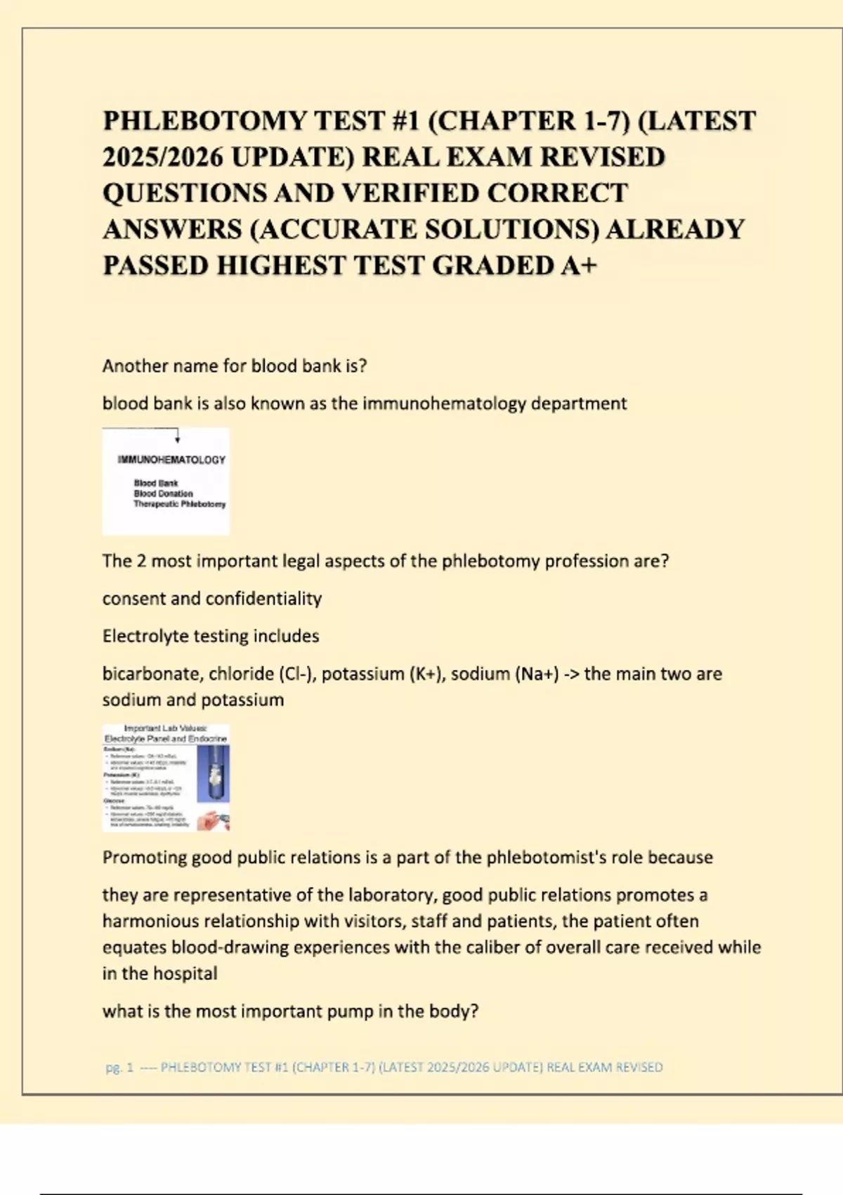 PHLEBOTOMY TEST #1 (CHAPTER 1-7) (LATEST UPDATE) REAL EXAM WITH REVISED QUESTIONS AND VERIFIED CORRECT ANSWERS (ACCURATE SOLUTIONS) ALREADY PASSED WITH THE HIGHEST TEST GRADE OF A+