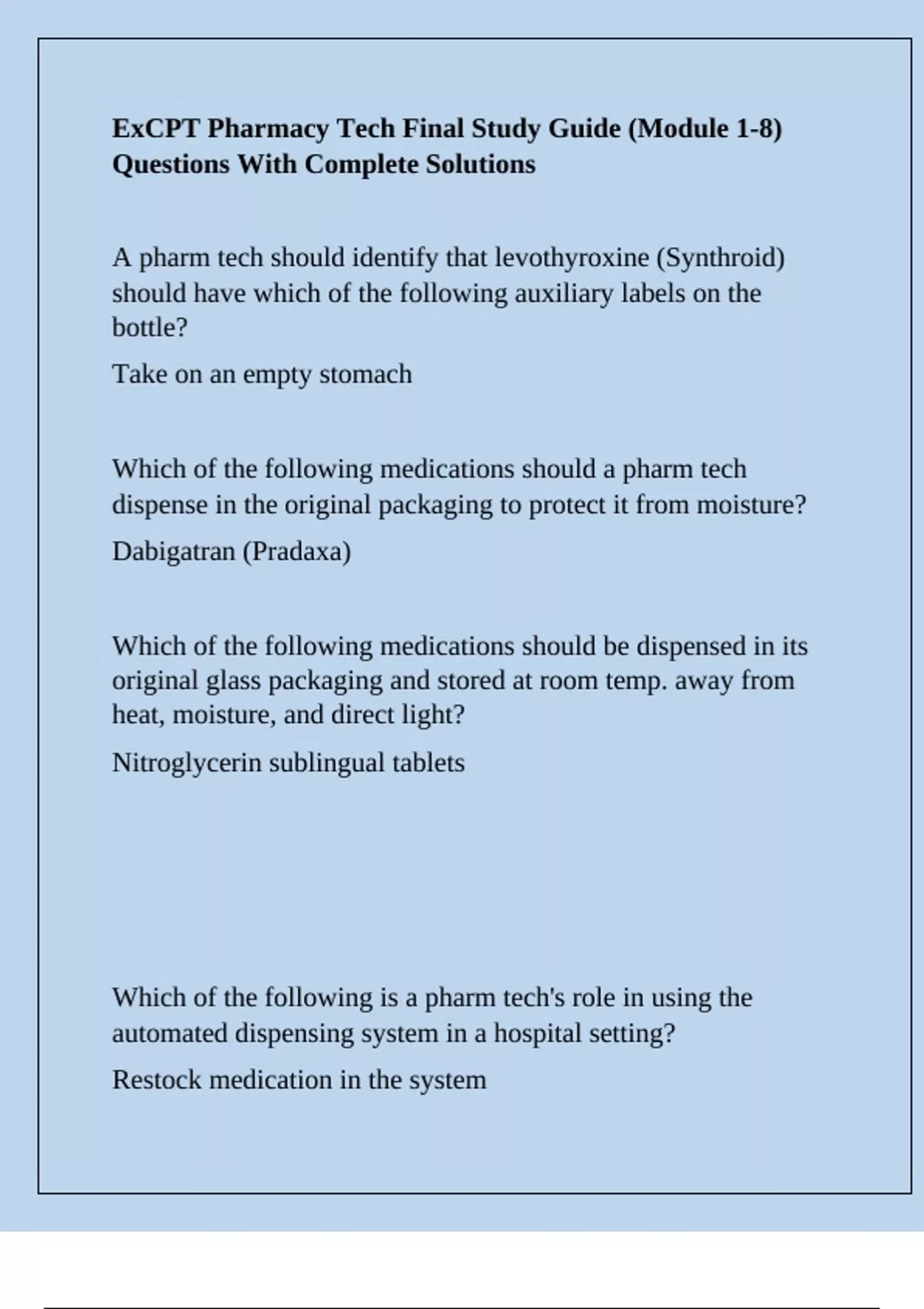 A pharm tech should recognize that which of the following