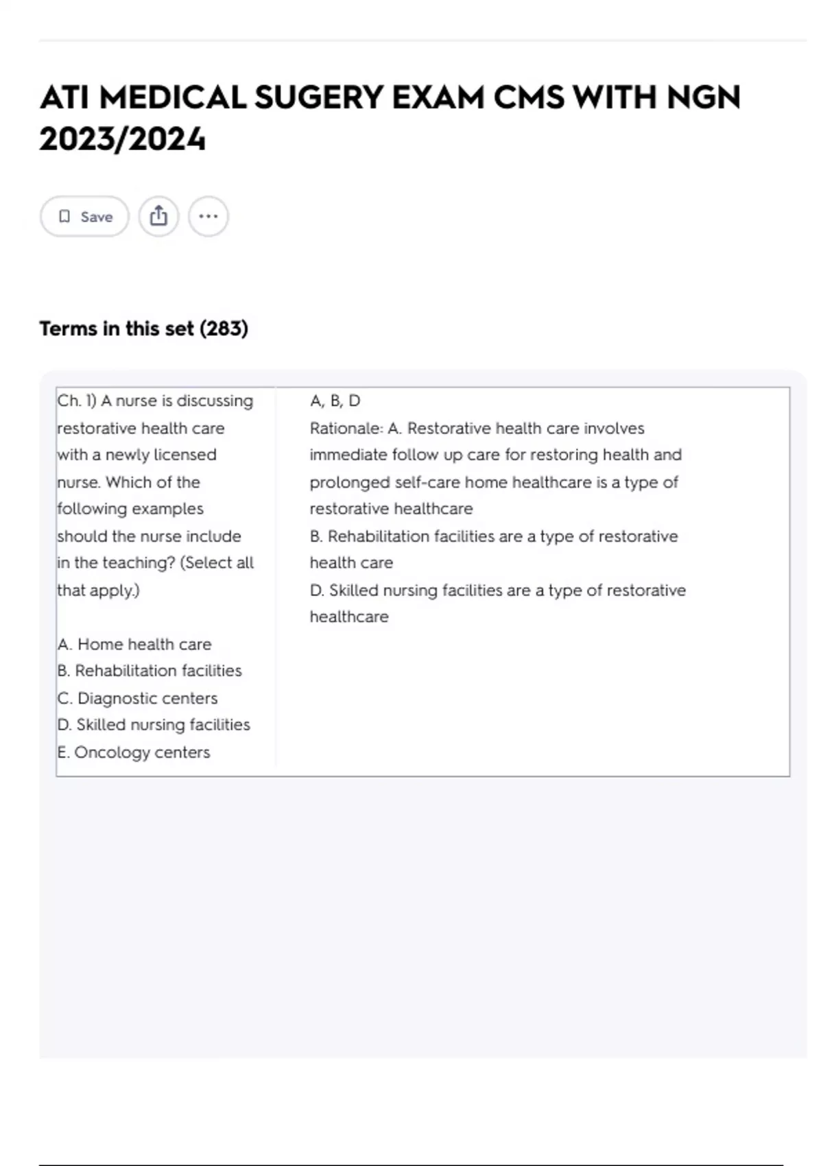 that apply.) D. Skilled nursing facilities are a type of restorative