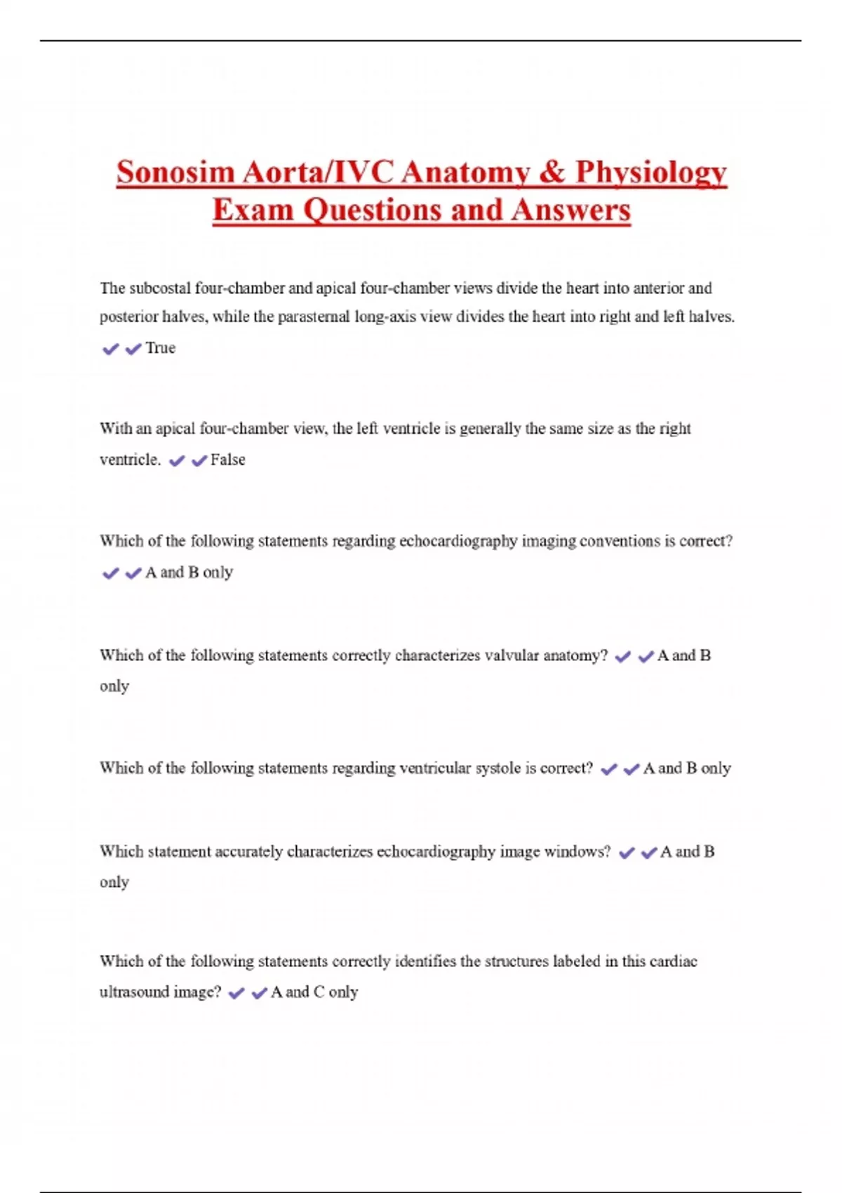 Sonosim Aorta/IVC Anatomy & Physiology Exam Questions and Answers