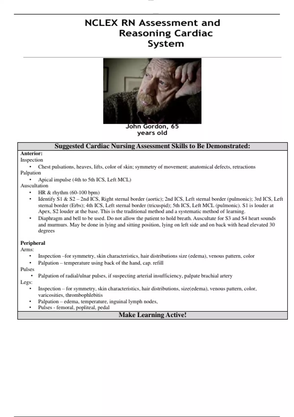 Suggested Cardiac Nursing Assessment Skills to Be Demonstrated: