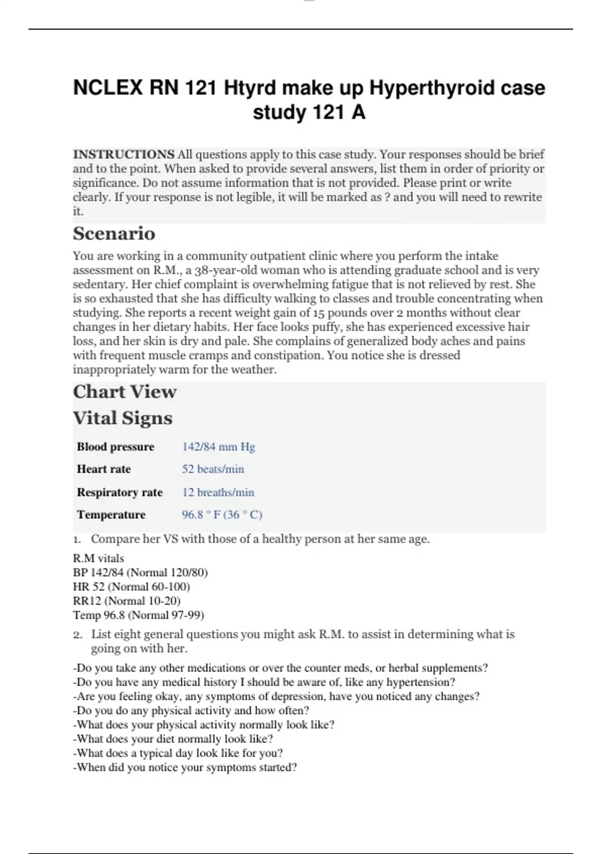 NCLEX RN 121 Htyrd make up Hyperthyroid case