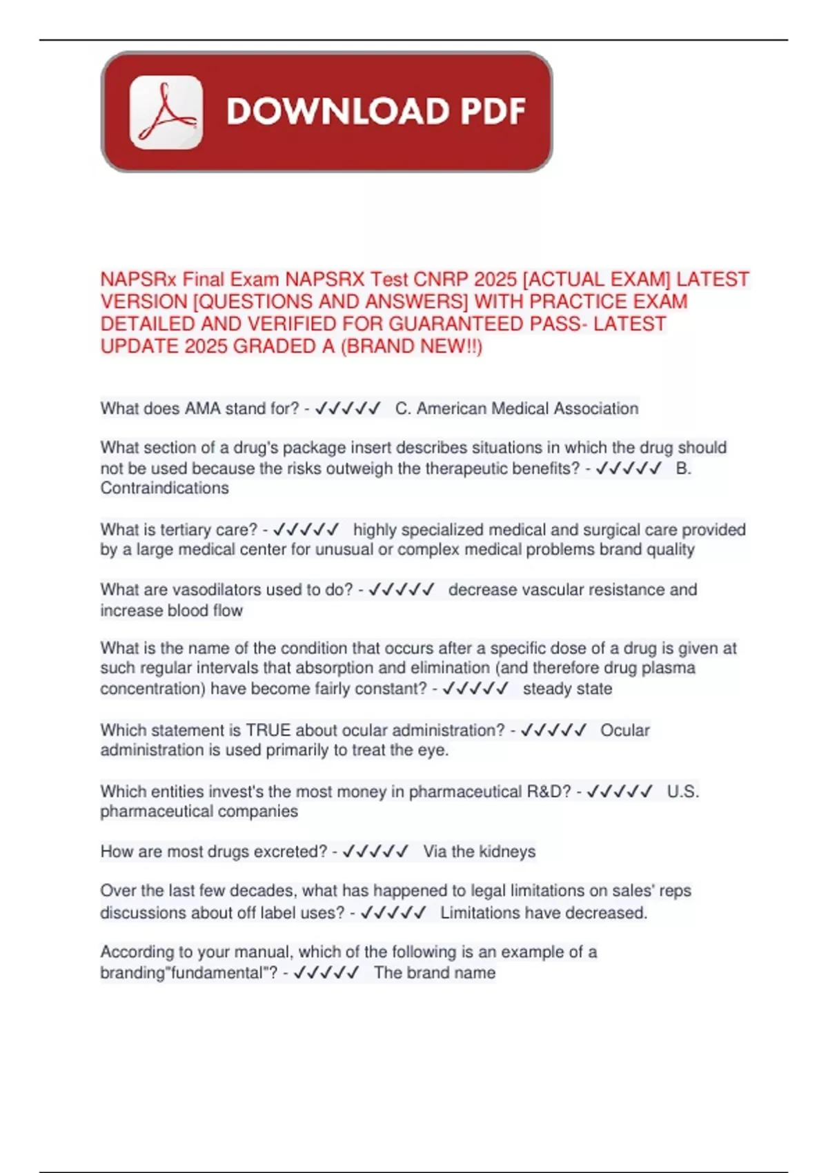 NAPSRx Final Exam NAPSRX Test CNRP 2025 [ACTUAL EXAM] LATEST VERSION [QUESTIONS AND ANSWERS] WITH PRACTICE EXAM DETAILED AND VERIFIED FOR GUARANTEED PASS- LATEST UPDATE 2025 GRADED A (BRAND NEW!!)