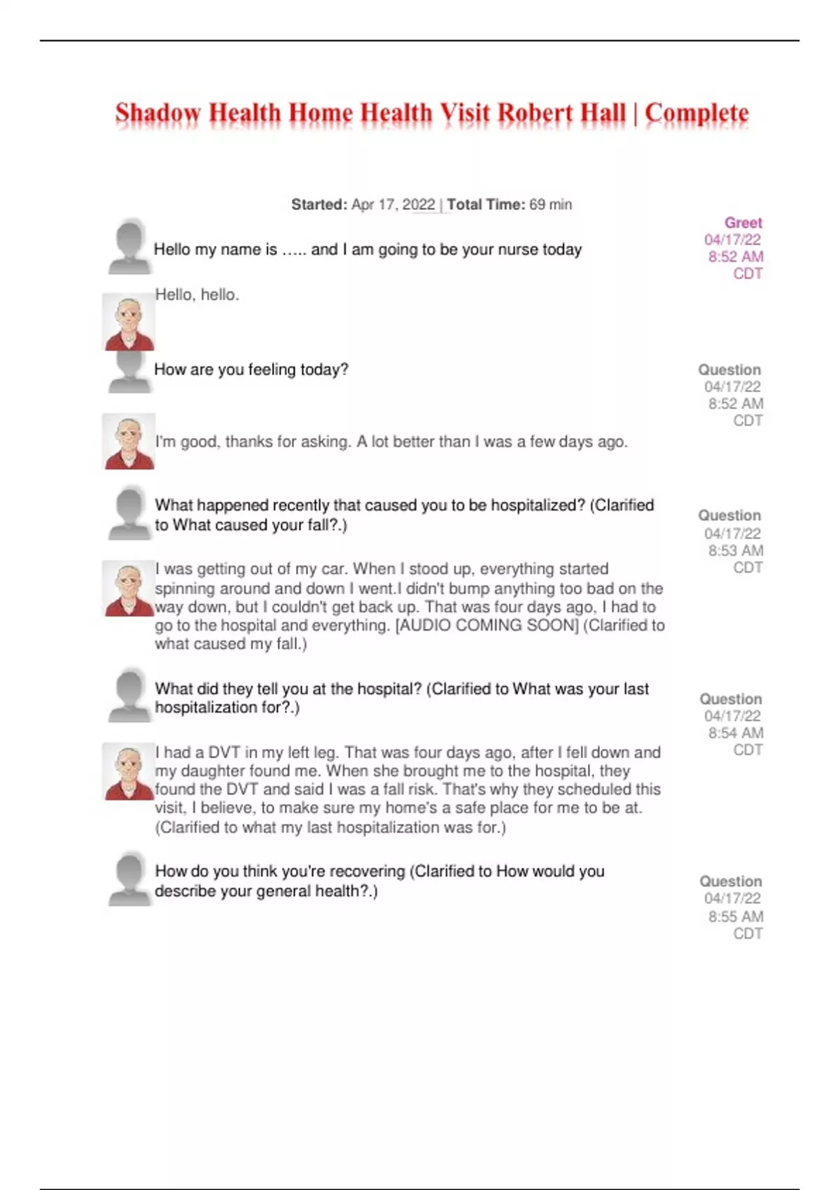 Hello my name is ….. and I am going to be your nurse today 8:52 AM