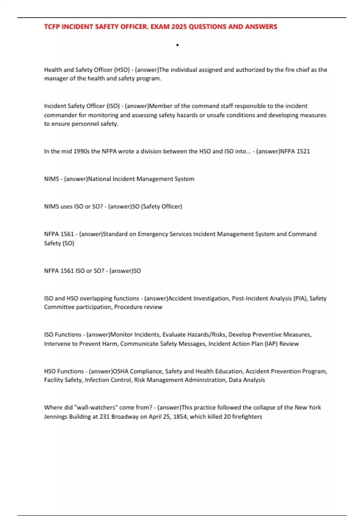 , TCFP INCIDENT SAFETY OFFICER. EXAM 2025 QUESTIONS AND ANSWERS