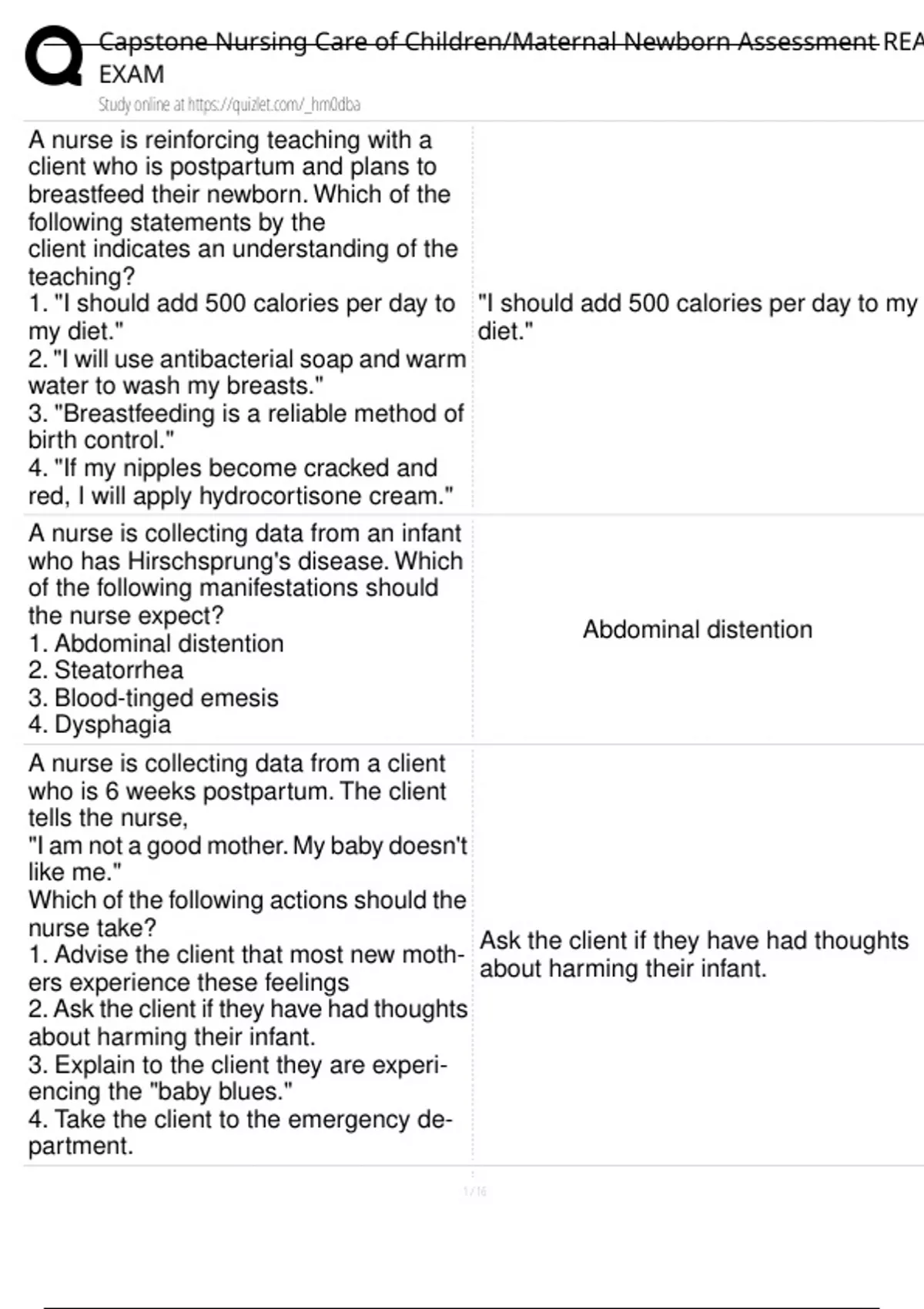 Capstone Nursing Care of Children_Maternal Newborn Assessment REAL EXAM
