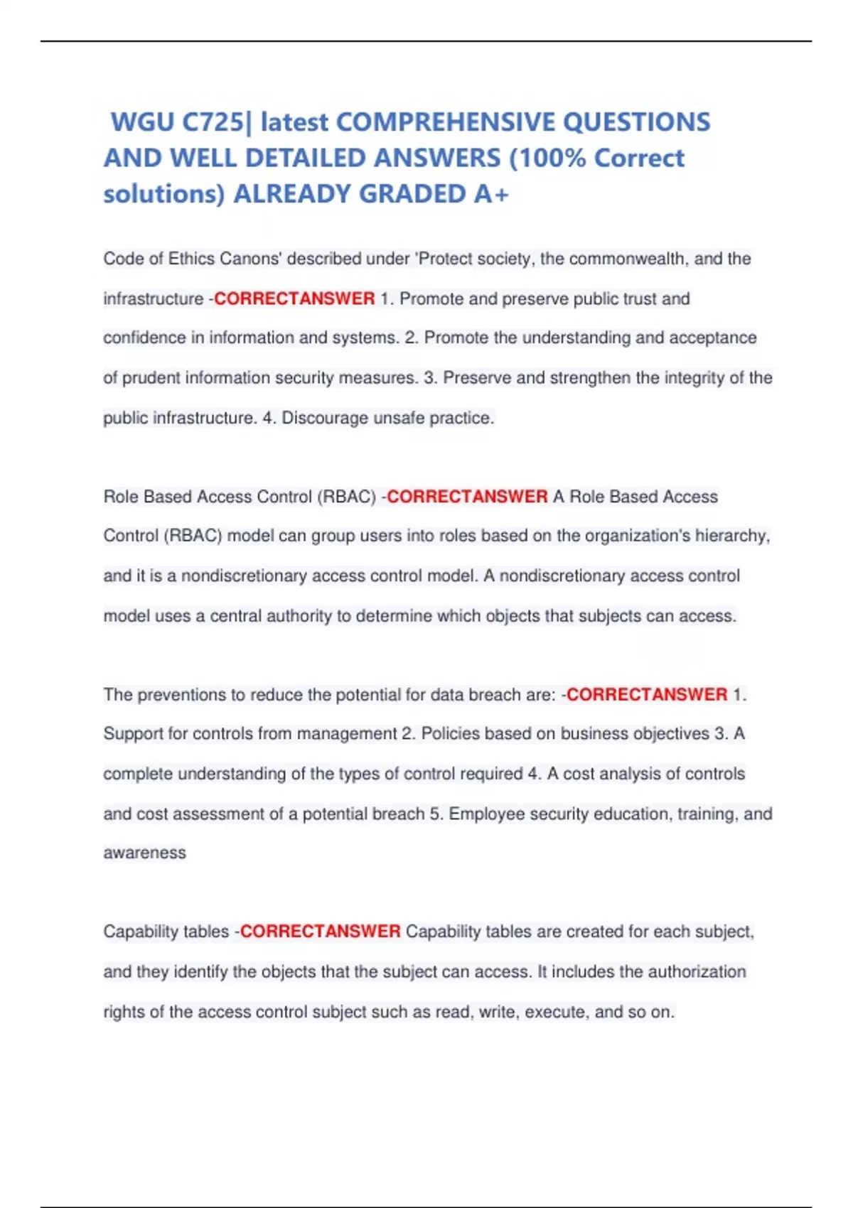 The preventions to reduce the potential for data breach are: -CORRECTANSWER 1.