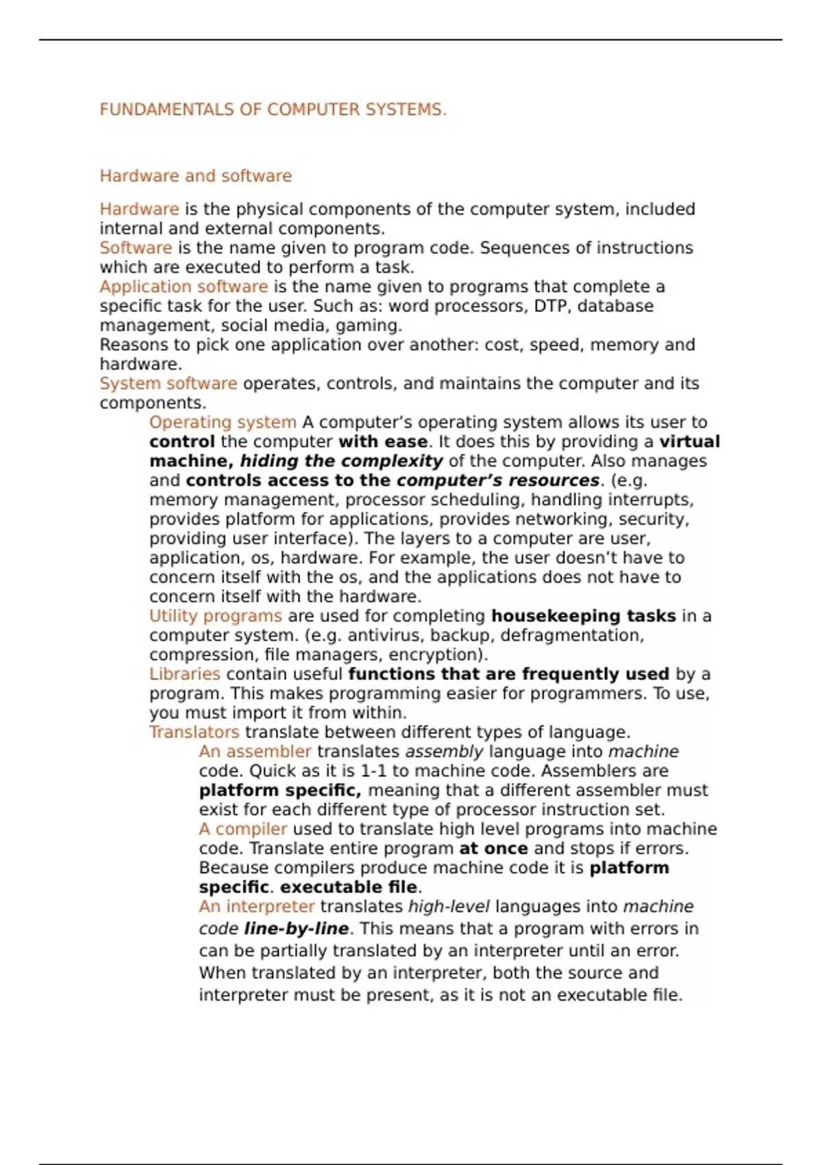 Level up your skills with these expertly written notes covering the fundamentals of computer systems topic from the AQA A-level Computer Science specification. Whether you're preparing for Paper 2 or reinforcing your understanding throughout the year, this resource is designed to make complex concepts crystal clear (used and made by a consistently A/A* student). What’s Inside: - Detailed explanations - Clear breakdown to reinforce understanding - Key terminology to help you apply concepts effectively - Structured summaries aligned with the AQA spec for efficient revision