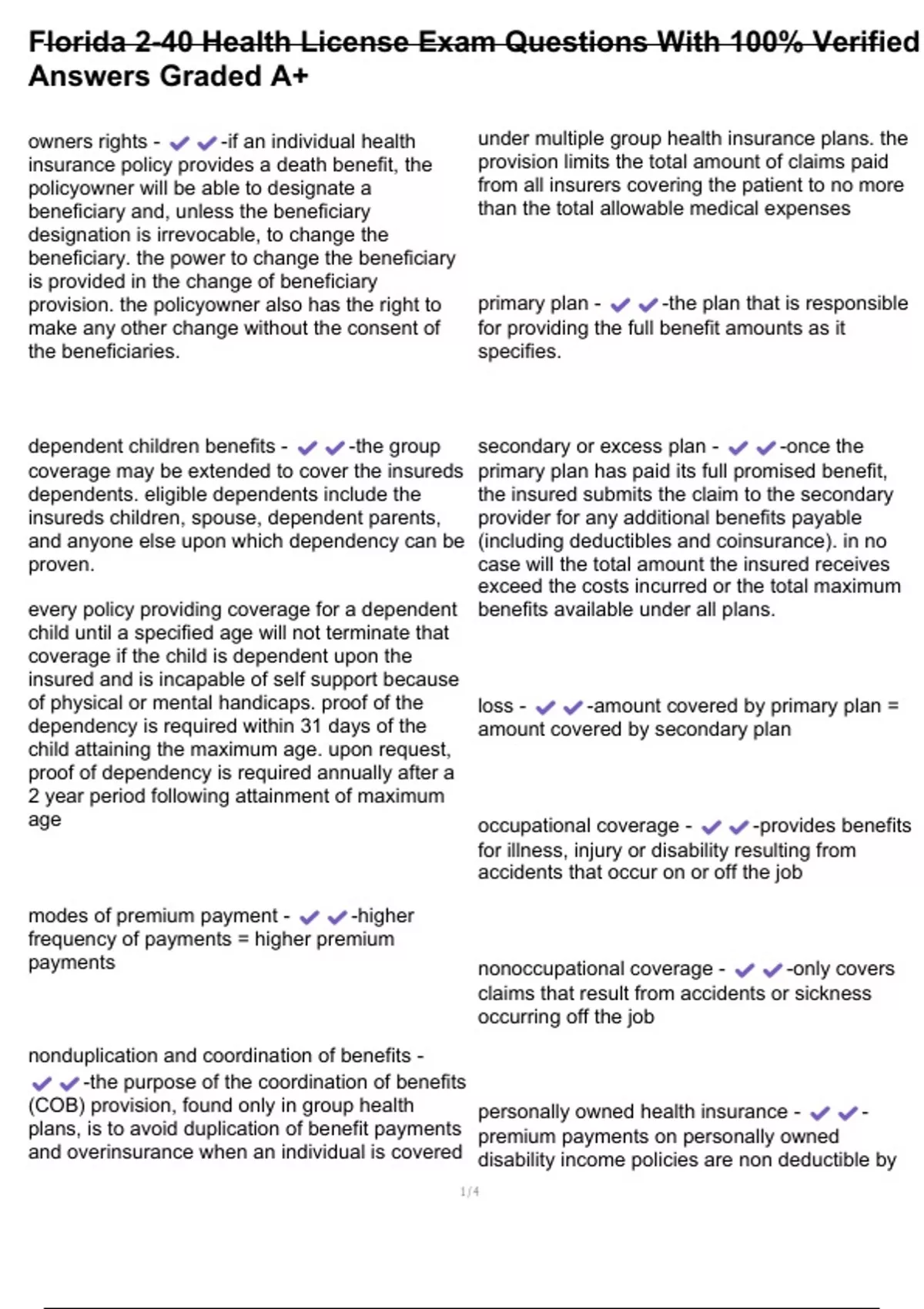 Florida 2-40 Health License Exam Questions With 100% Verified Answers Graded A+