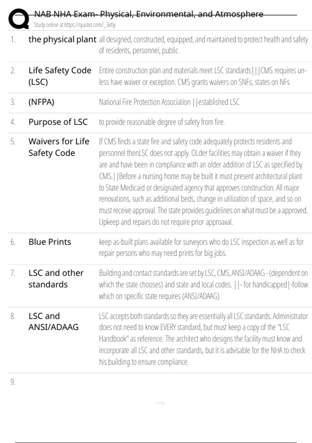 2. Life Safety Code Entire construction plan and materials meet LSC standards|||CMS requires un-