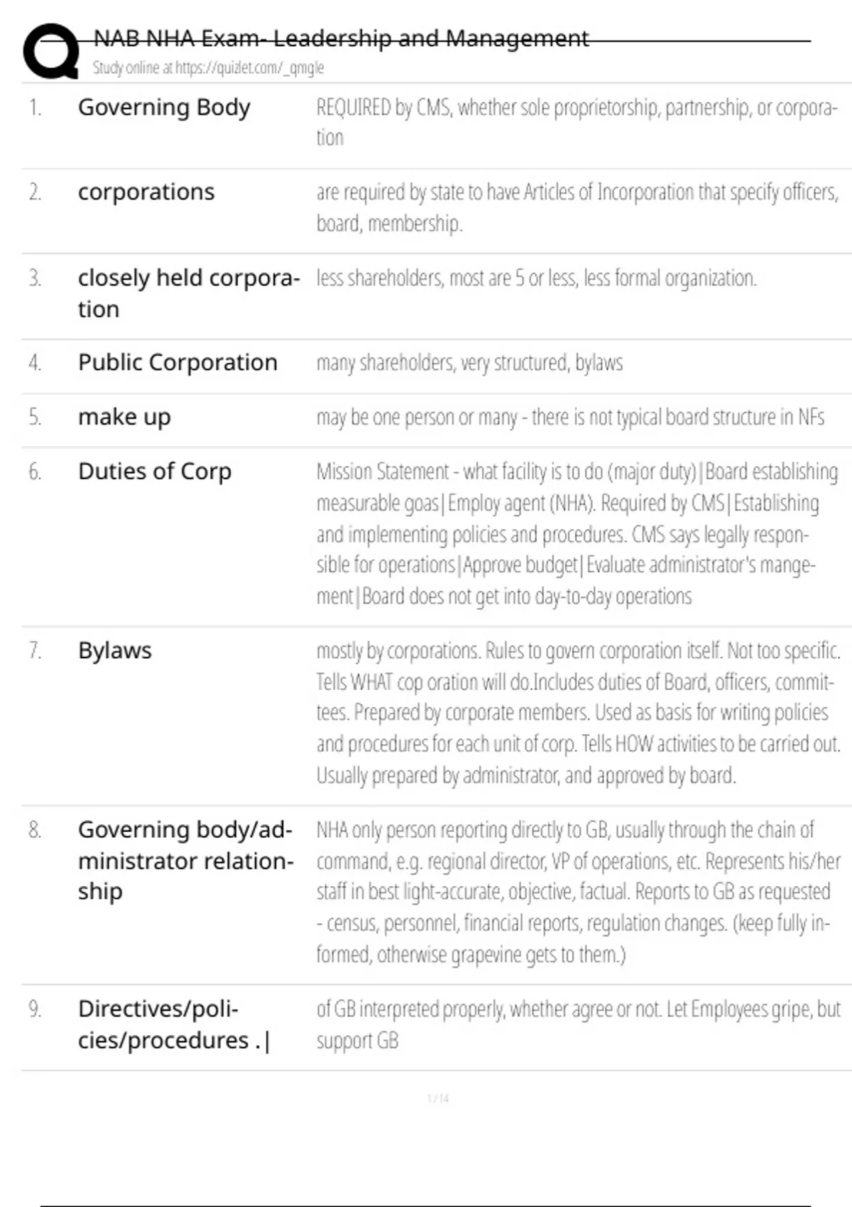 8. Governing body/ad- NHA only person reporting directly to GB, usually through the chain of