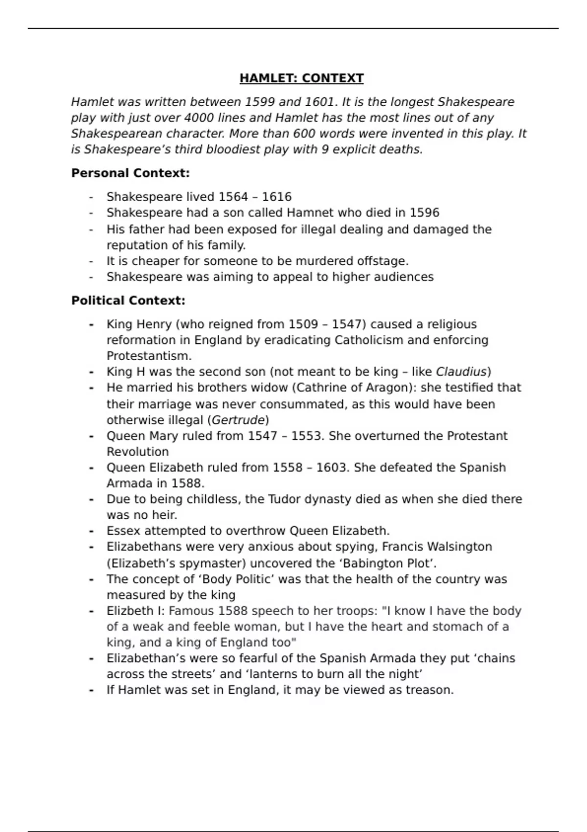 HAMLET: CONTEXT
