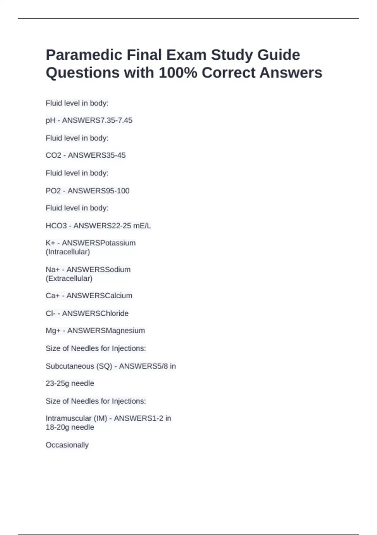 HCO3 - ANSWERS22-25 mE/L