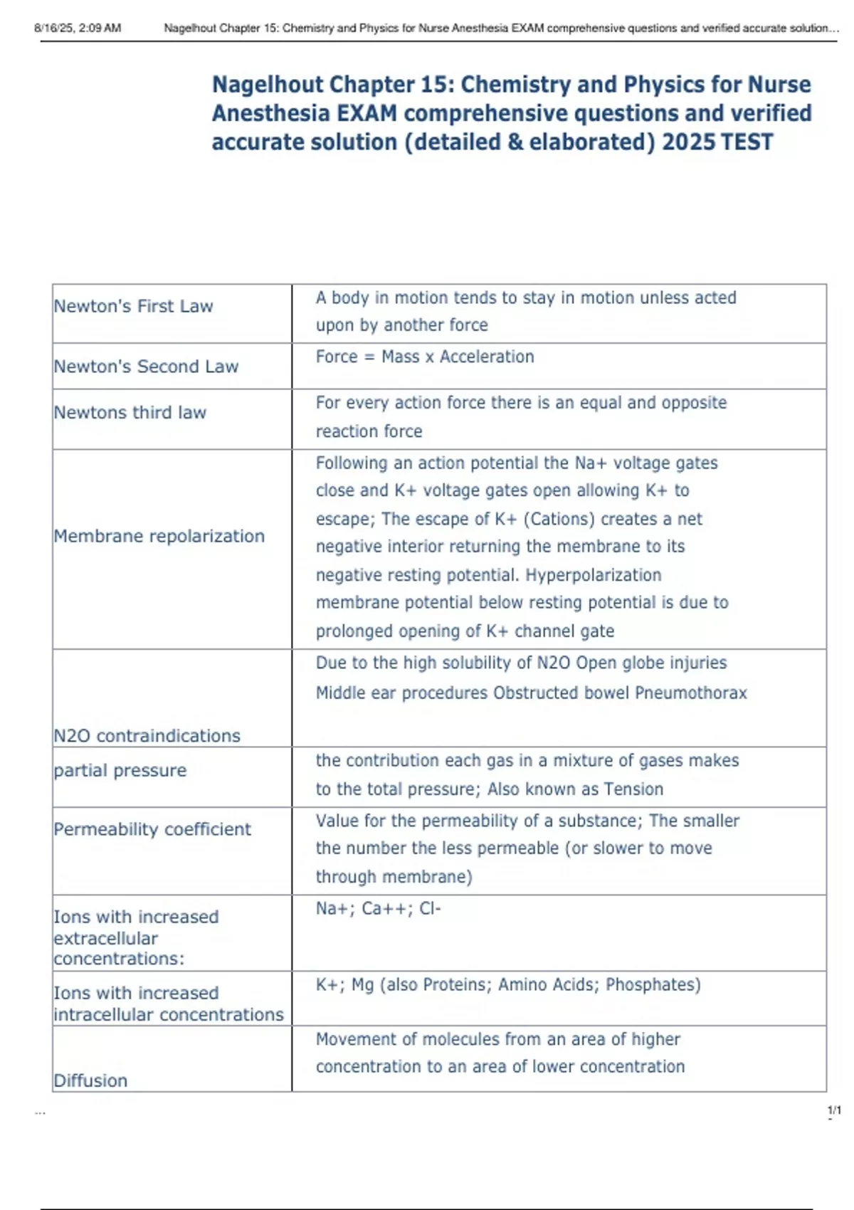 8/16/25, 2:09 AM Nagelhout Chapter 15: Chemistry and Physics for Nurse Anesthesia EXAM comprehensive questions and verified accurate solution…