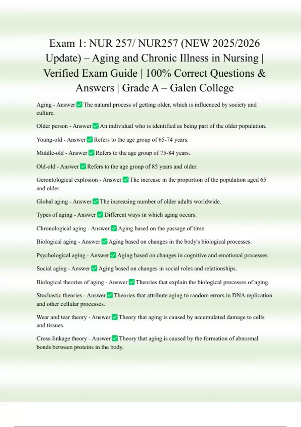 Sociological theories of aging - Answer Theories that explain the social aspects of aging.