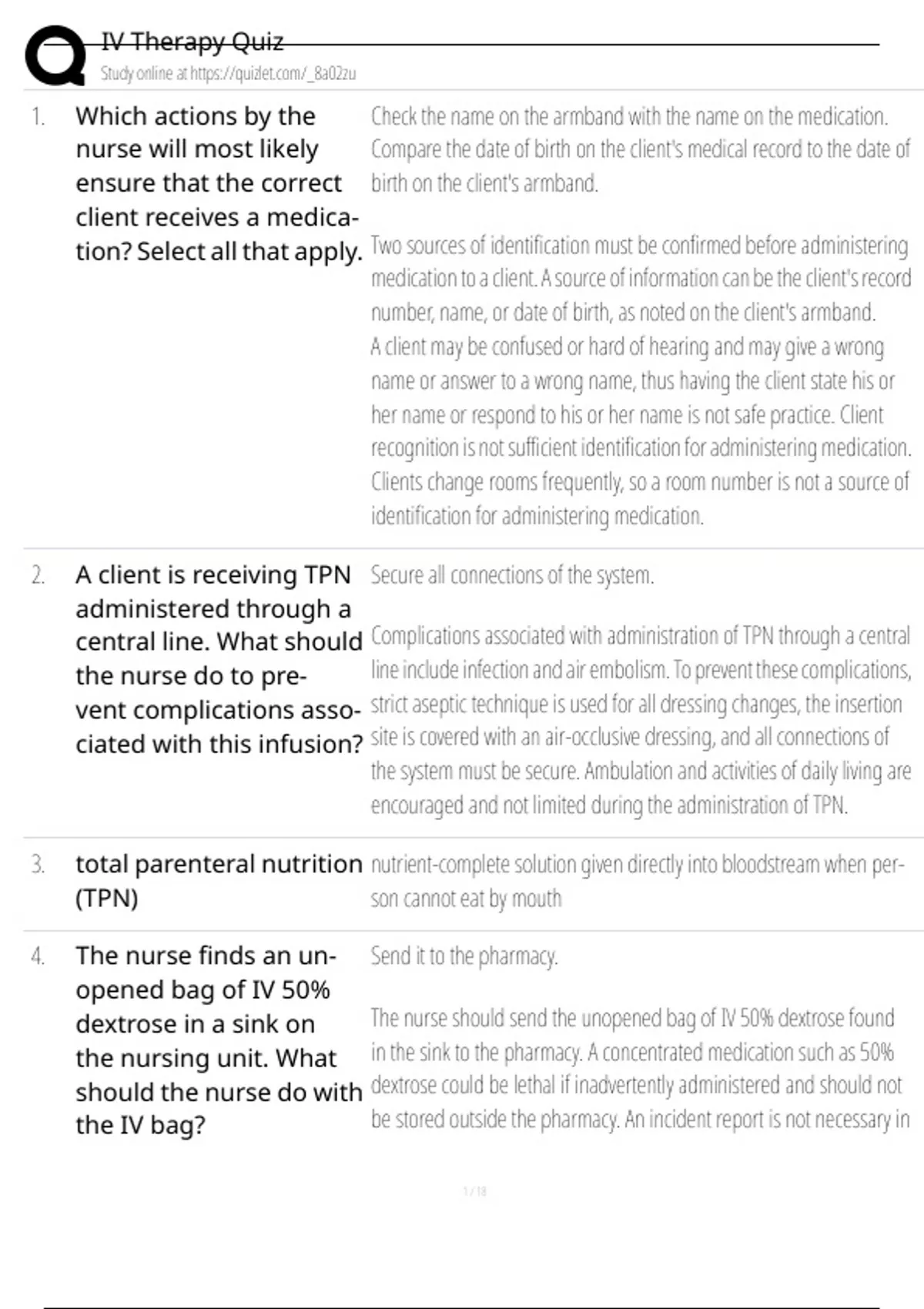, IV Therapy Quiz