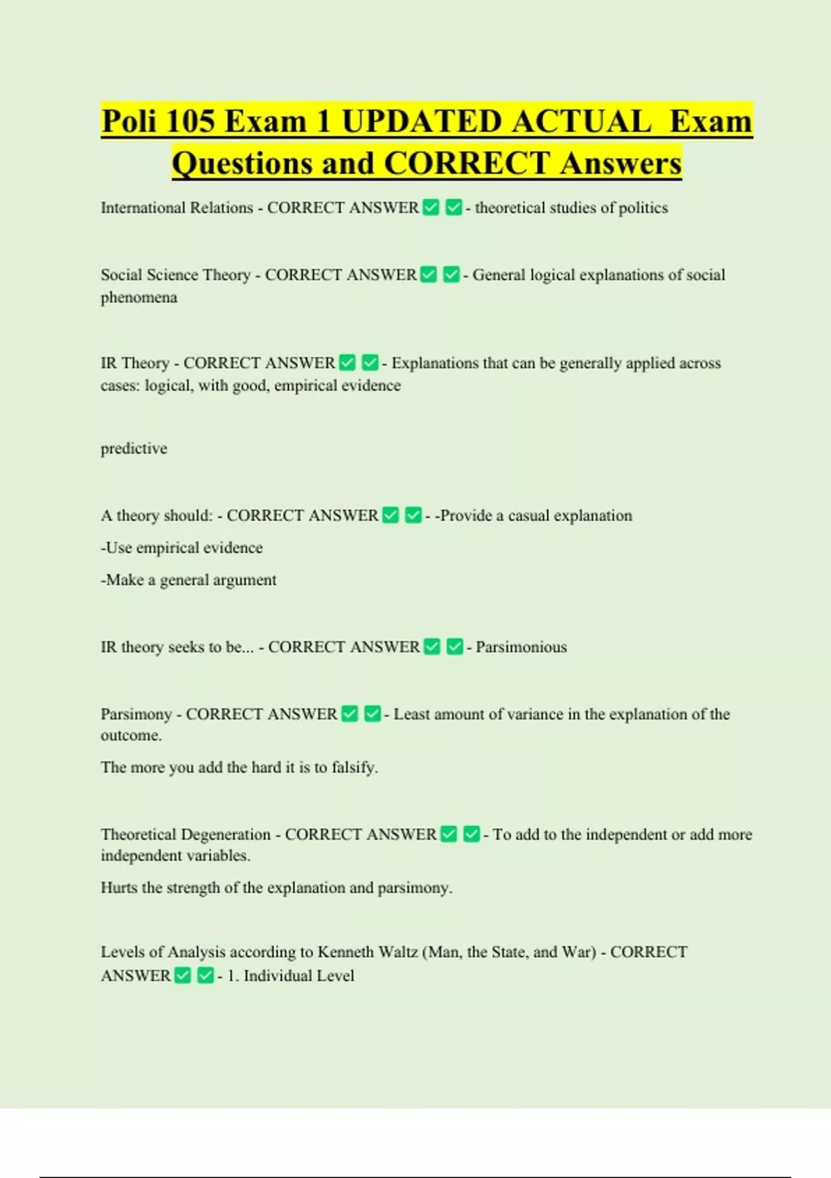 IR theory seeks to be... - CORRECT ANSWER - Parsimonious
