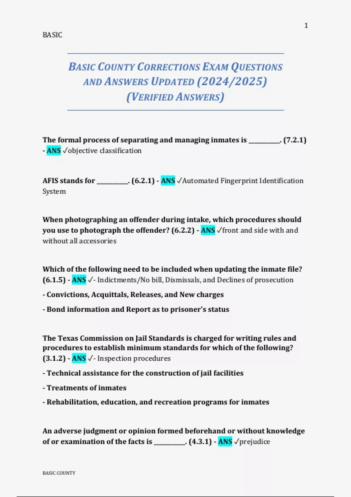BASIC COUNTY CORRECTIONS EXAM QUESTIONS