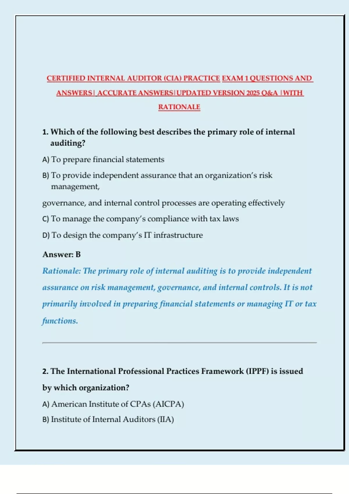 2. The International Professional Practices Framework (IPPF) is issued