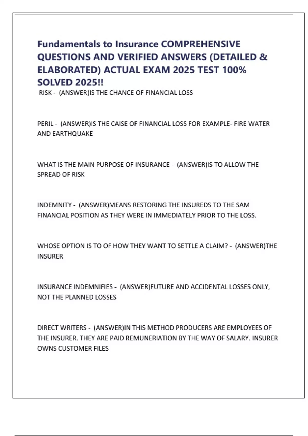 Fundamentals to Insurance COMPREHENSIVE