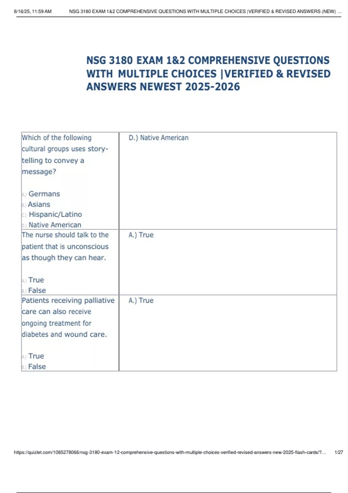 , 8/16/25, 11:59 AM NSG 3180 EXAM 1&2 COMPREHENSIVE QUESTIONS WITH MULTIPLE CHOICES |VERIFIED & REVISED ANSWERS (NEW) …