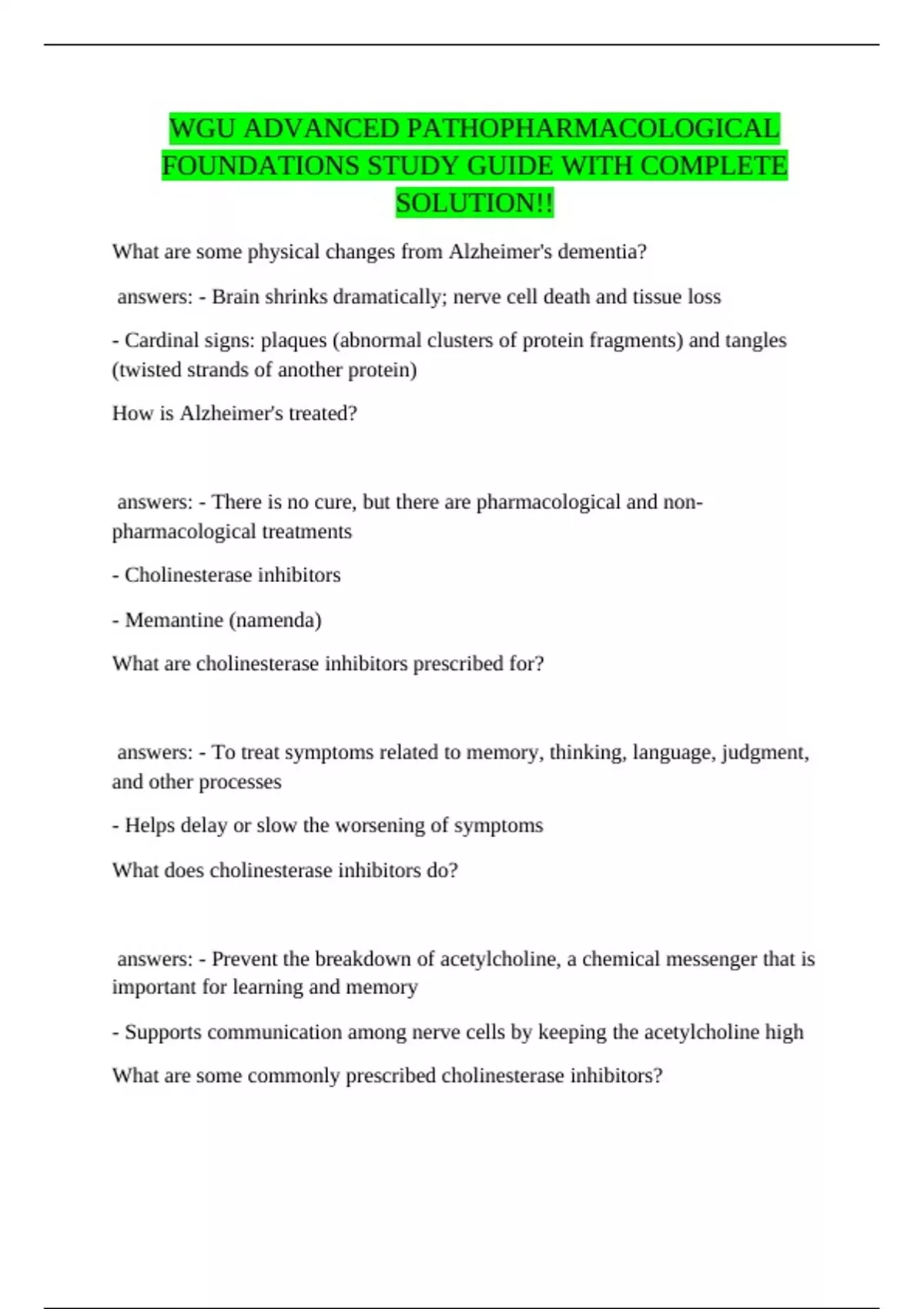 ,answers: - Donepezil (aricept)
