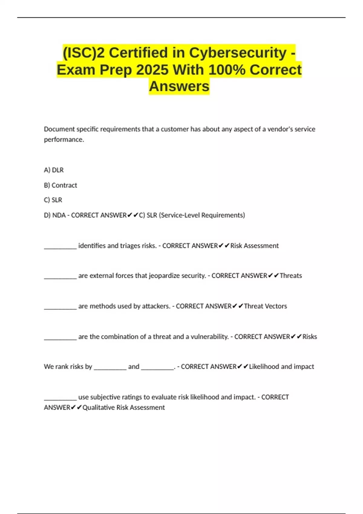 D) NDA - CORRECT ANSWER✔✔C) SLR (Service-Level Requirements)