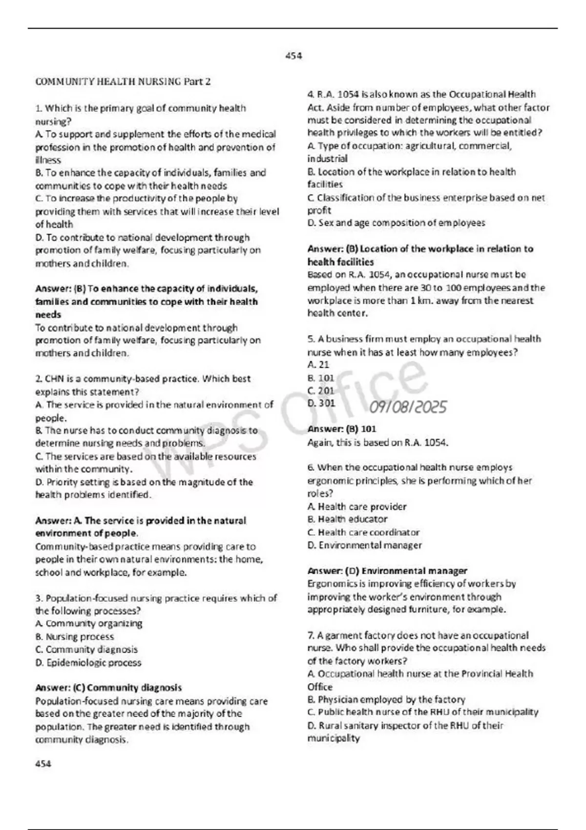 Community Health Nursing Exam 2 Questions And Answers With Rationales