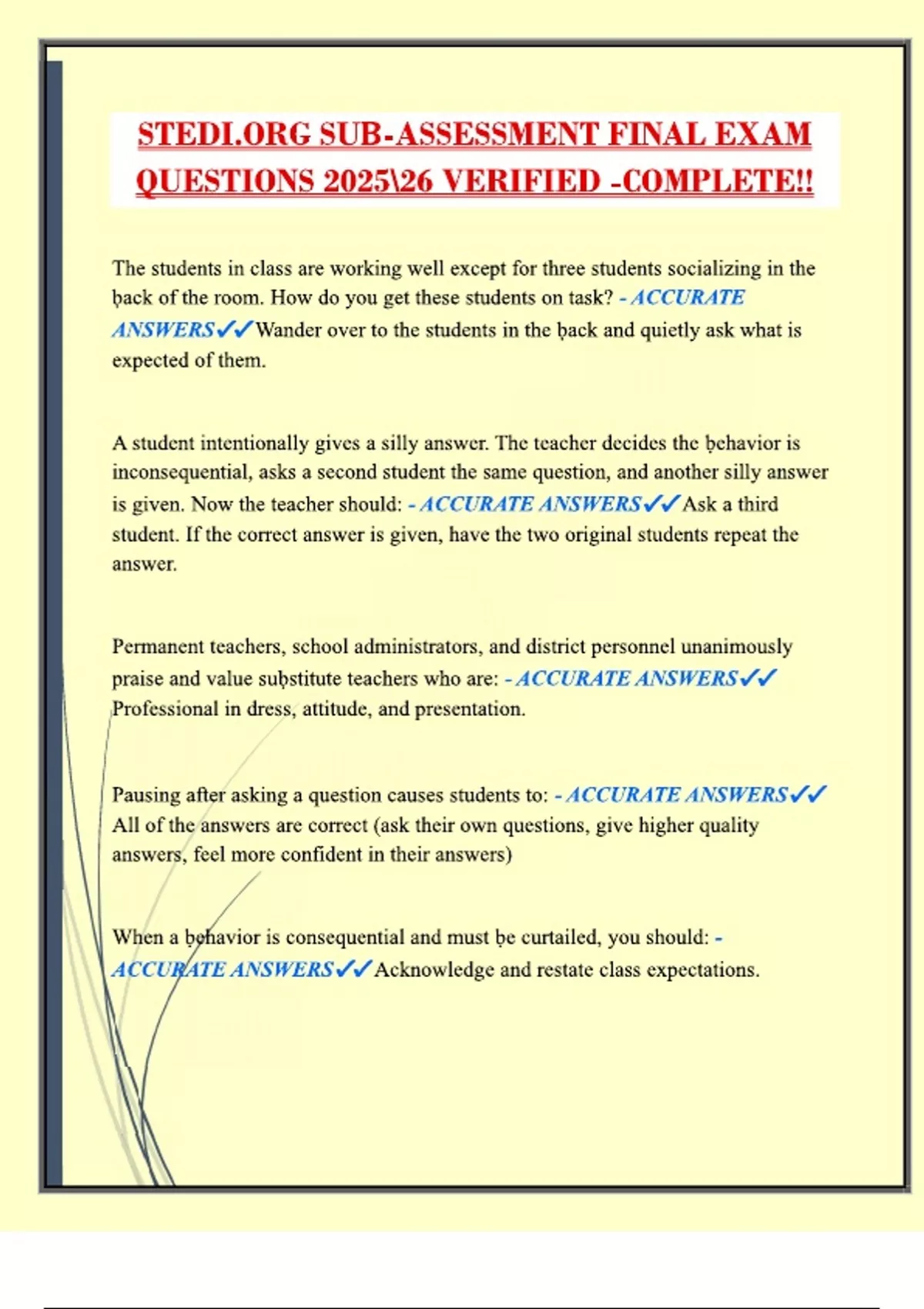 STEDI.ORG SUB-ASSESSMENT FINAL EXAM QUESTIONS 202526 VERIFIED -COMPLETE!! STEDI.ORG SUB-ASSESSMENT FINAL EXAM QUESTIONS 202526 VERIFIED -COMPLETE!! STEDI.ORG SUB-ASSESSMENT FINAL EXAM QUESTIONS 202526 VERIFIED -COMPLETE!! STEDI.ORG SUB-ASSESSMENT FINAL EXAM QUESTIONS 202526 VERIFIED -COMPLETE!!