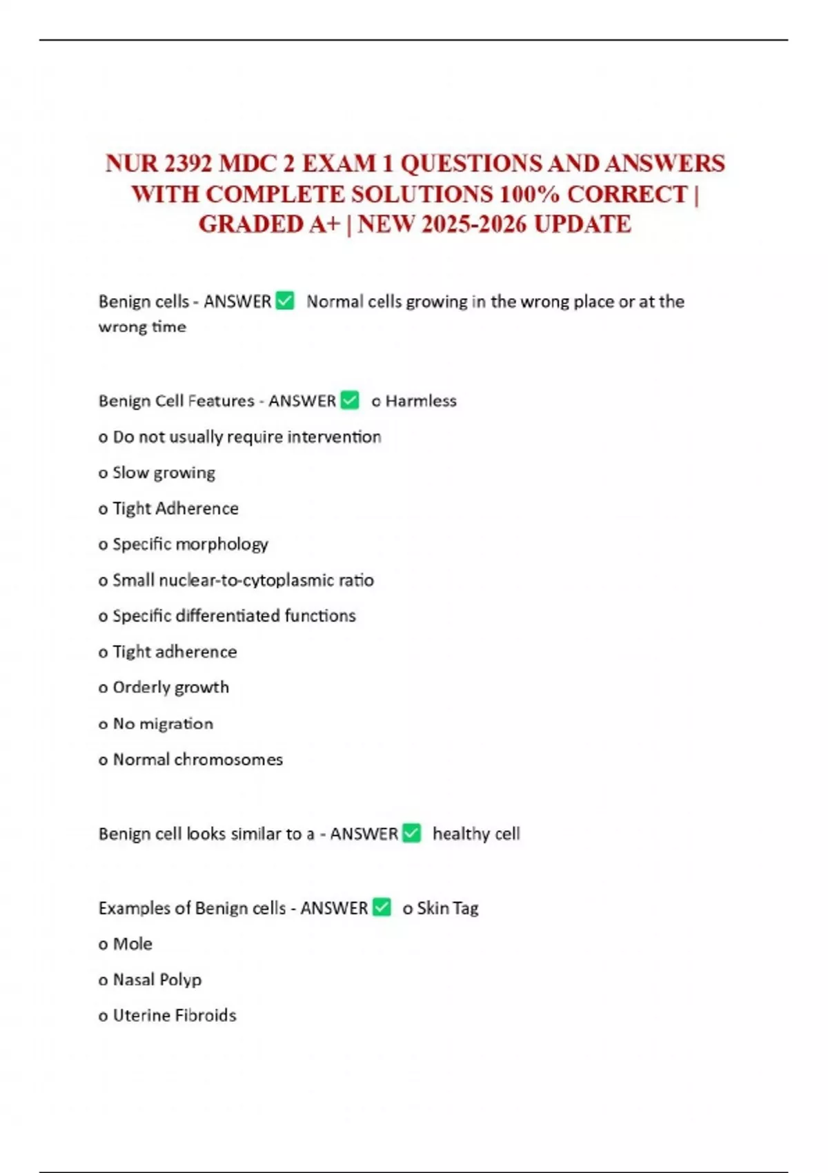 - benign cells