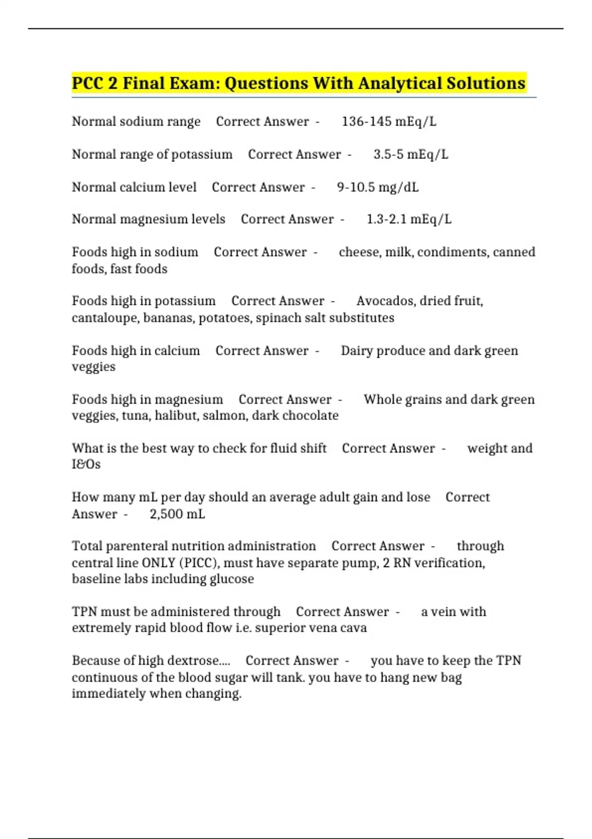 TPN contents Correct Answer - 1. ALWAYS hypertonic