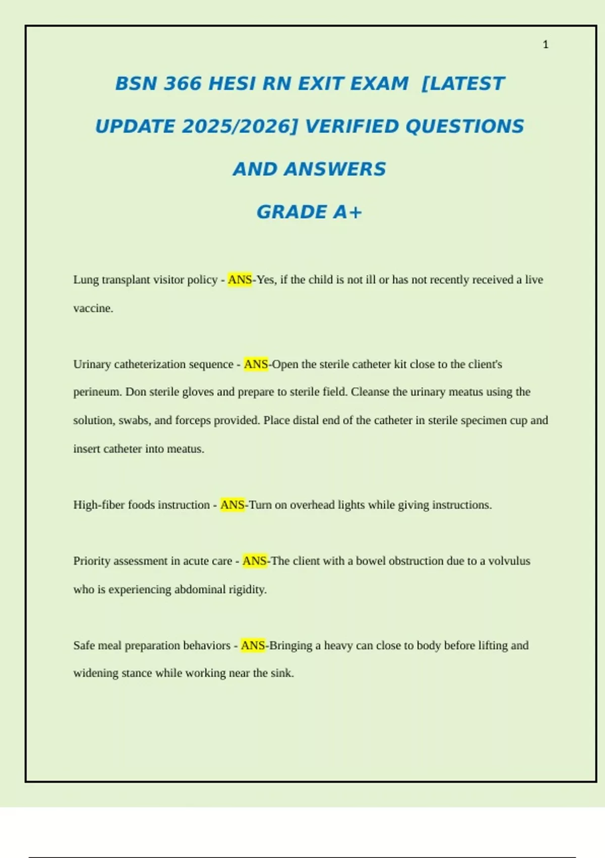 BSN 366 HESI RN EXIT EXAM [LATEST