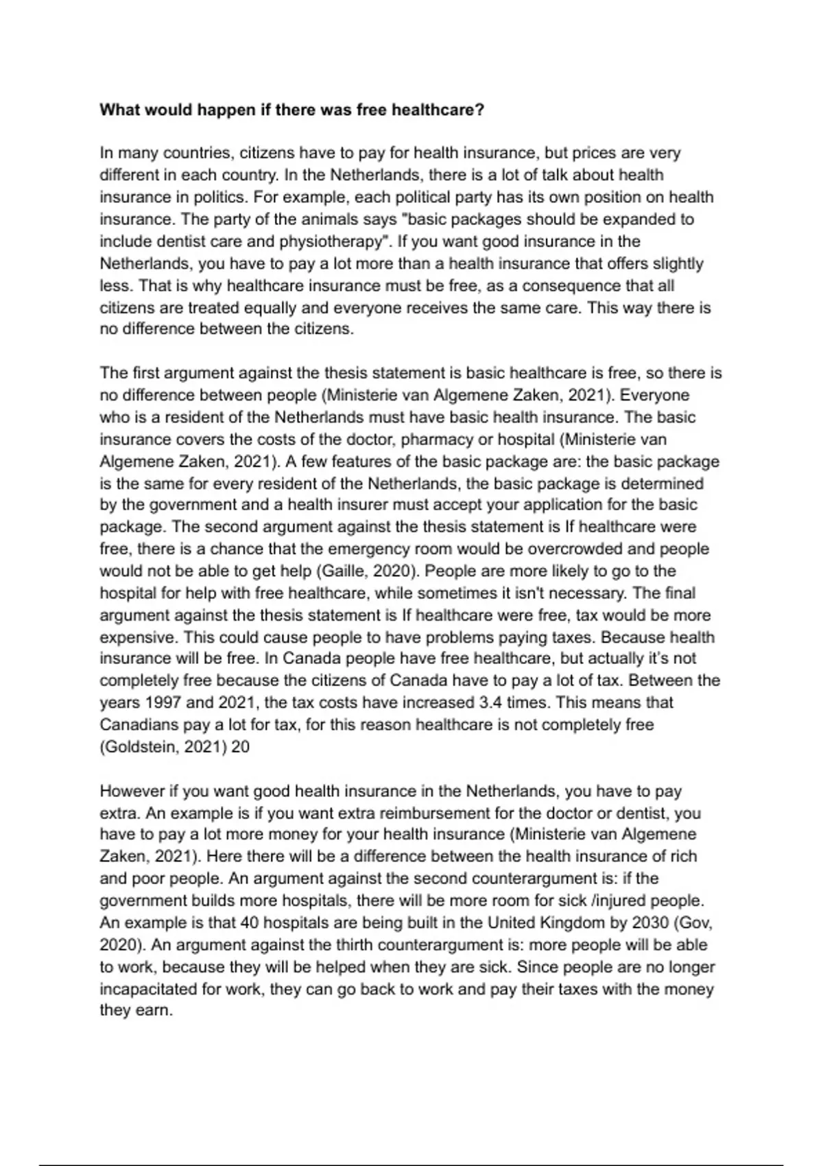 argument against the thesis statement is If healthcare were free, tax would be more