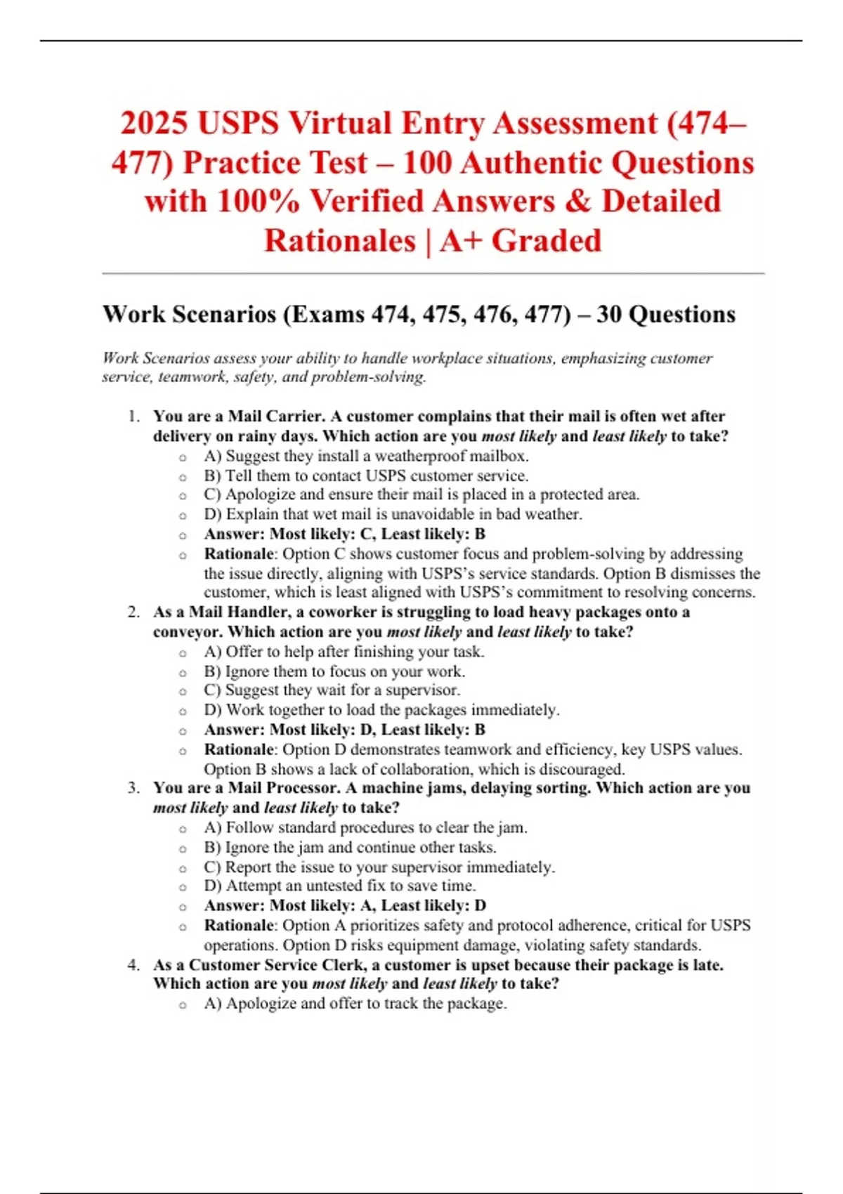o Rationale: Option A follows USPS protocol and prioritizes safety. Option D is