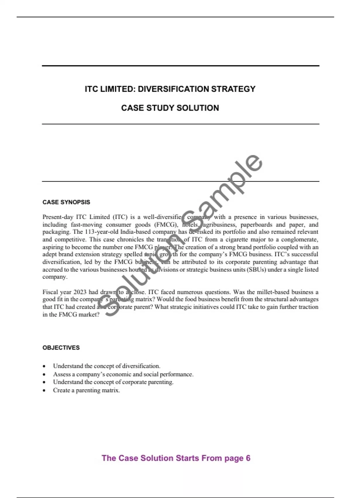 Get the ITC Limited Diversification Strategy Case Study Solution and Analysis by Jagandeep Singh | Case ID: W35227. We guarantee that this case solution is 100% original, official, and not AI-generated. It is a plagiarism-free, complete, and well-structured solution, perfect for exam preparation, assignments, and research.