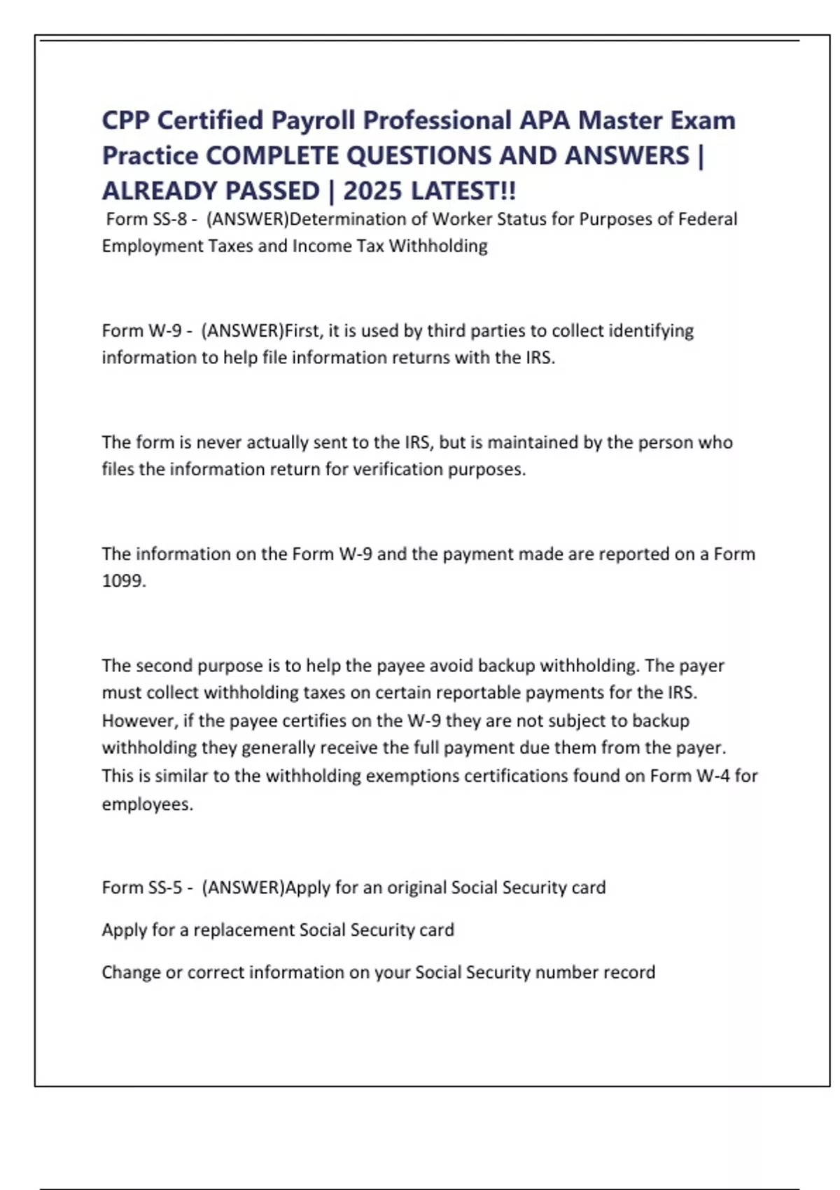 D. Form SS-8 - (ANSWER)D