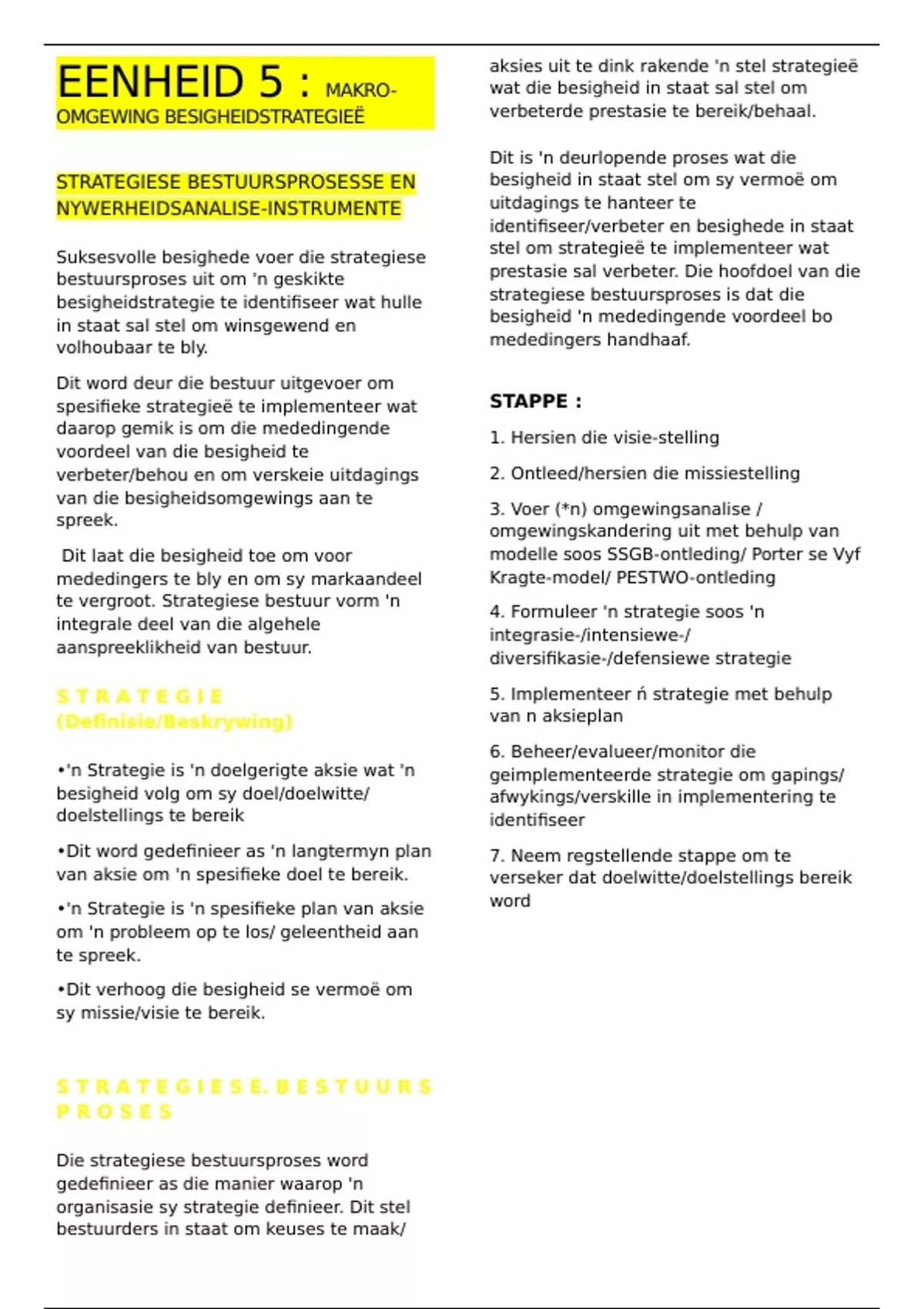 My studienotas is sorgvuldig opgestel om ’n duidelike en omvattende oorsig van die materiaal te bied. Elke onderwerp word in goed georganiseerde afdelings verdeel, wat dit maklik maak om te volg en te verstaan. Die notas is bondig maar deeglik, wat sleutelkonsepte in detail dek sonder om die leser oorweldig. Ek gebruik presiese taal en duidelike verduidelikings om te verseker dat die inhoud beide toeganklik en boeiend is. Goed navors en akkuraat, my notas bied waardevolle insigte en voorbeelde wat studente help om selfs die mees komplekse idees te begryp. Dit is ontwerp om so effektief as moontlik te wees, en is ’n noodsaaklike bron vir enigeen wat in hul studies wil slaag.