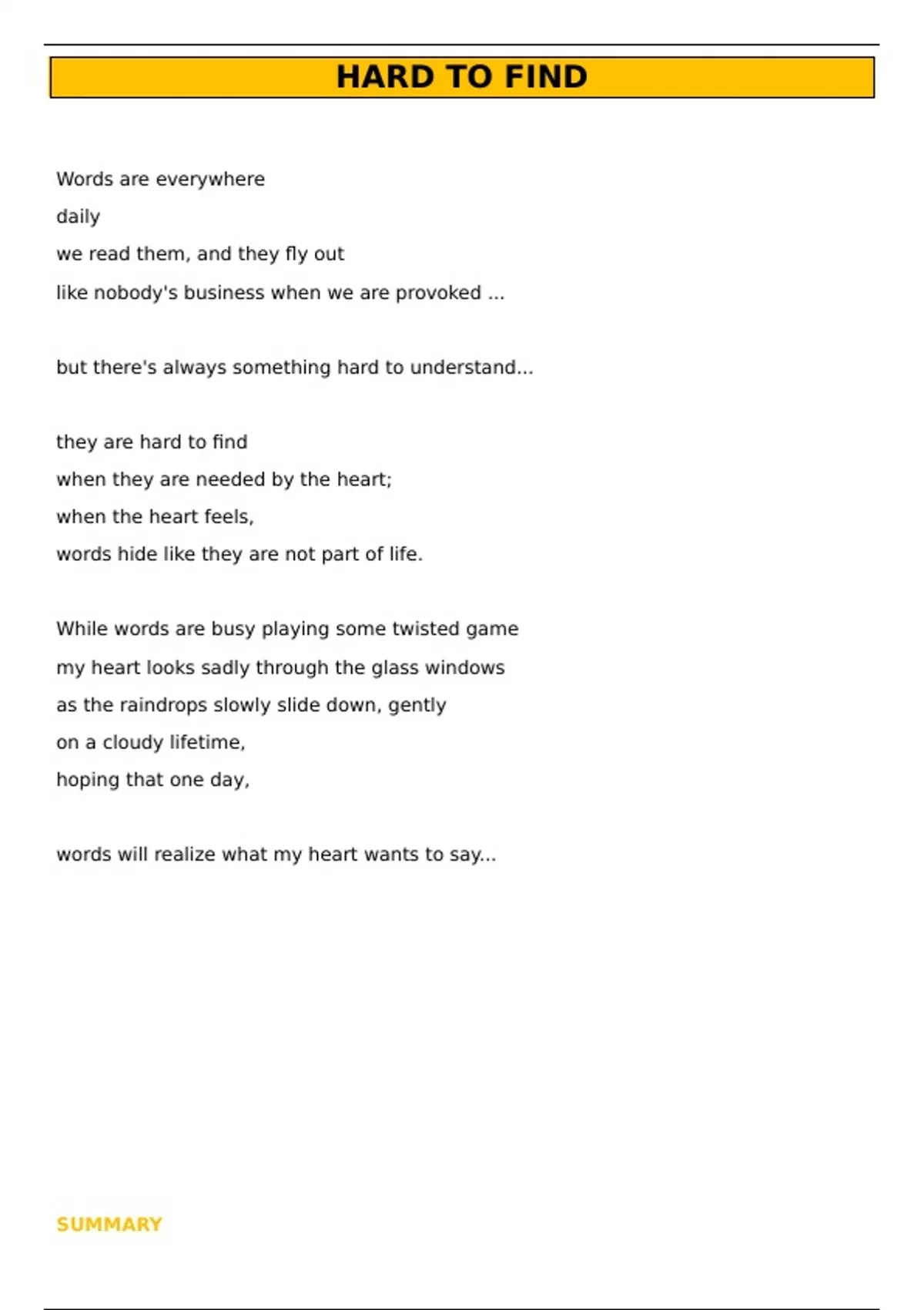 words hide like they are not part of life.