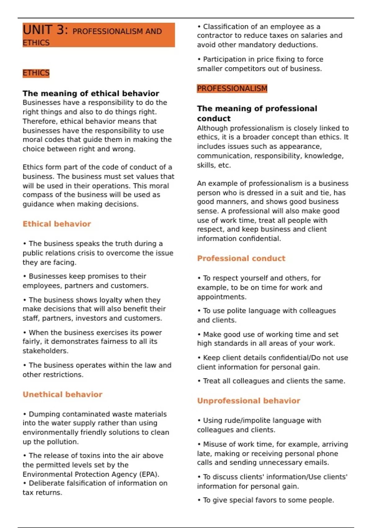 UNIT 3: PROFESSIONALISM AND