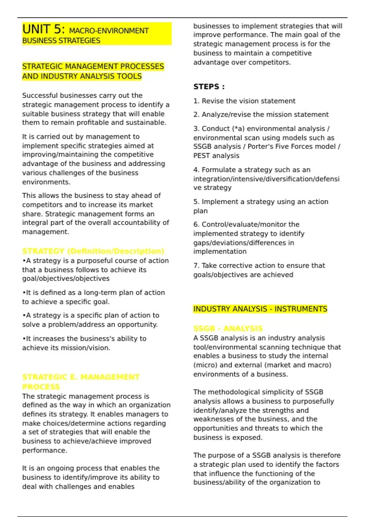 •It increases the business's ability to A SSGB analysis is an industry analysis
