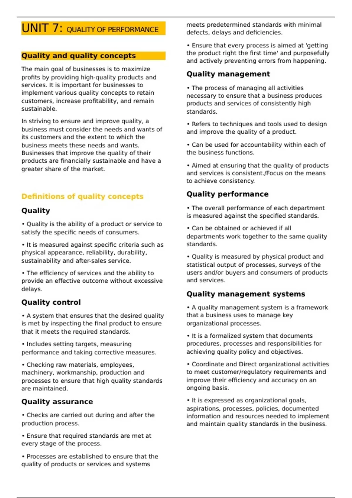 implement various quality concepts to retain necessary to ensure that a business produces