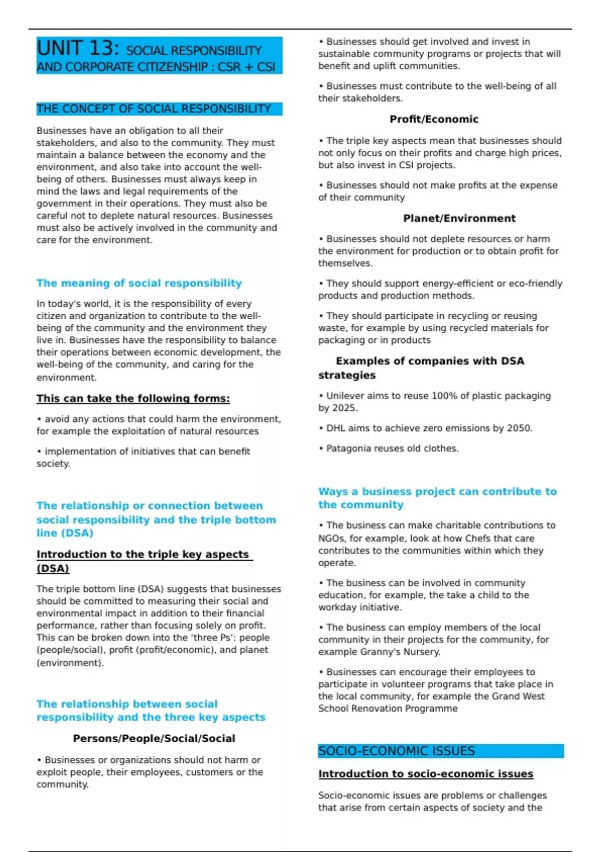 AND CORPORATE CITIZENSHIP : CSR + CSI benefit and uplift communities.