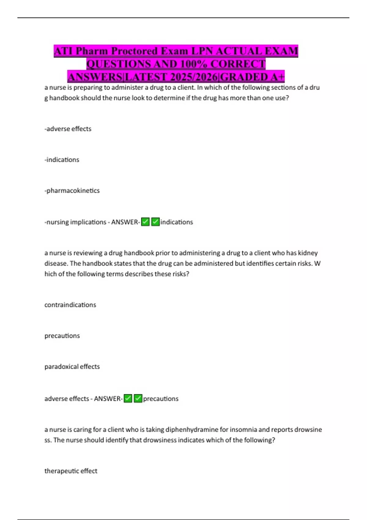 ATI Pharm Proctored Exam LPN ACTUAL EXAM QUESTIONS AND 100% CORRECT ANSWERS|LATEST 2025/2026|GRADED A+