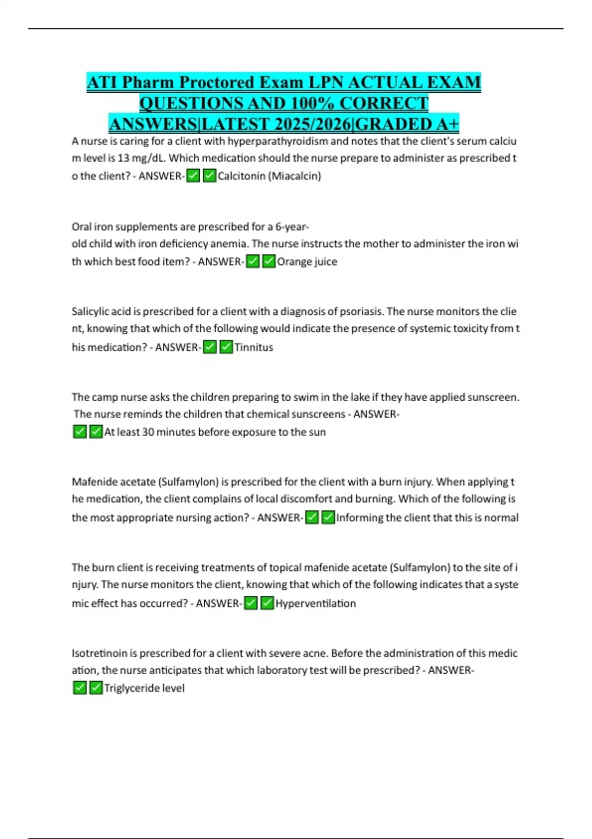 ATI Pharm Proctored Exam LPN ACTUAL EXAM