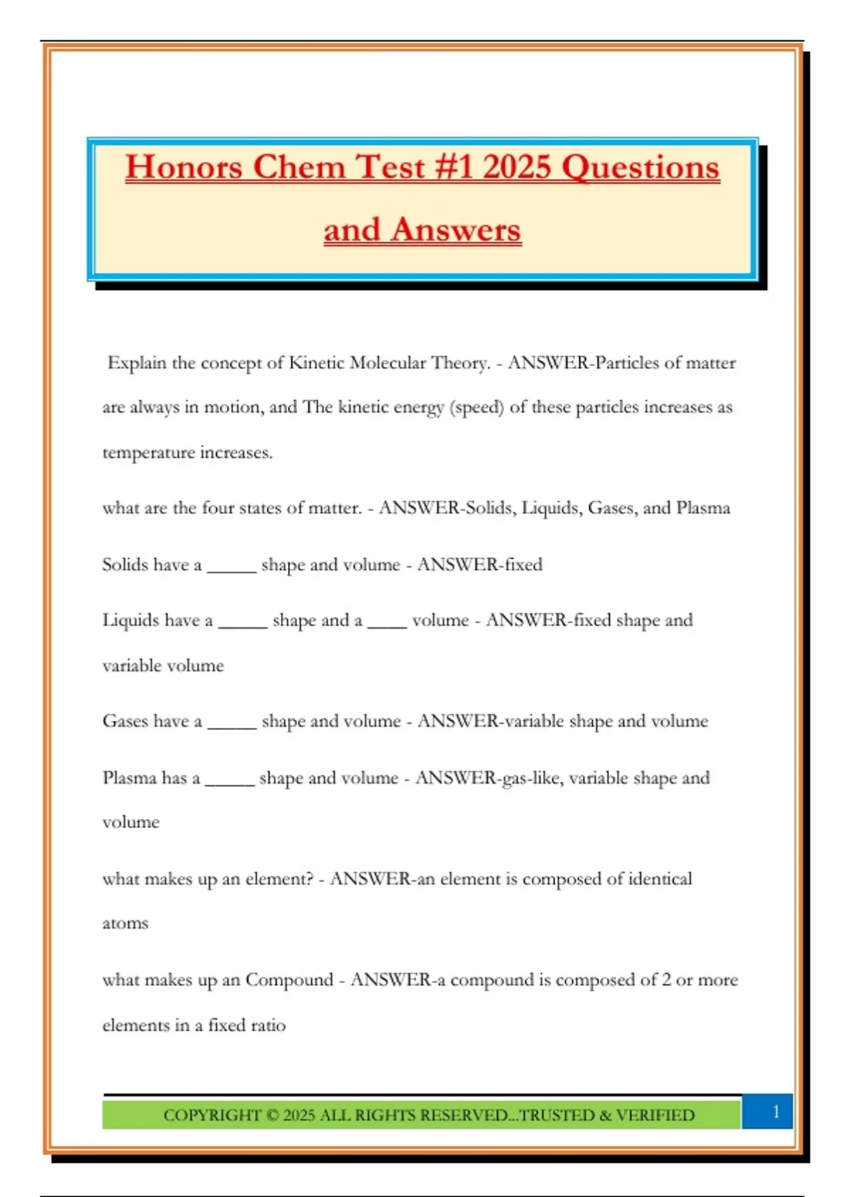 Honors Chem Test #1 2025 Questions
