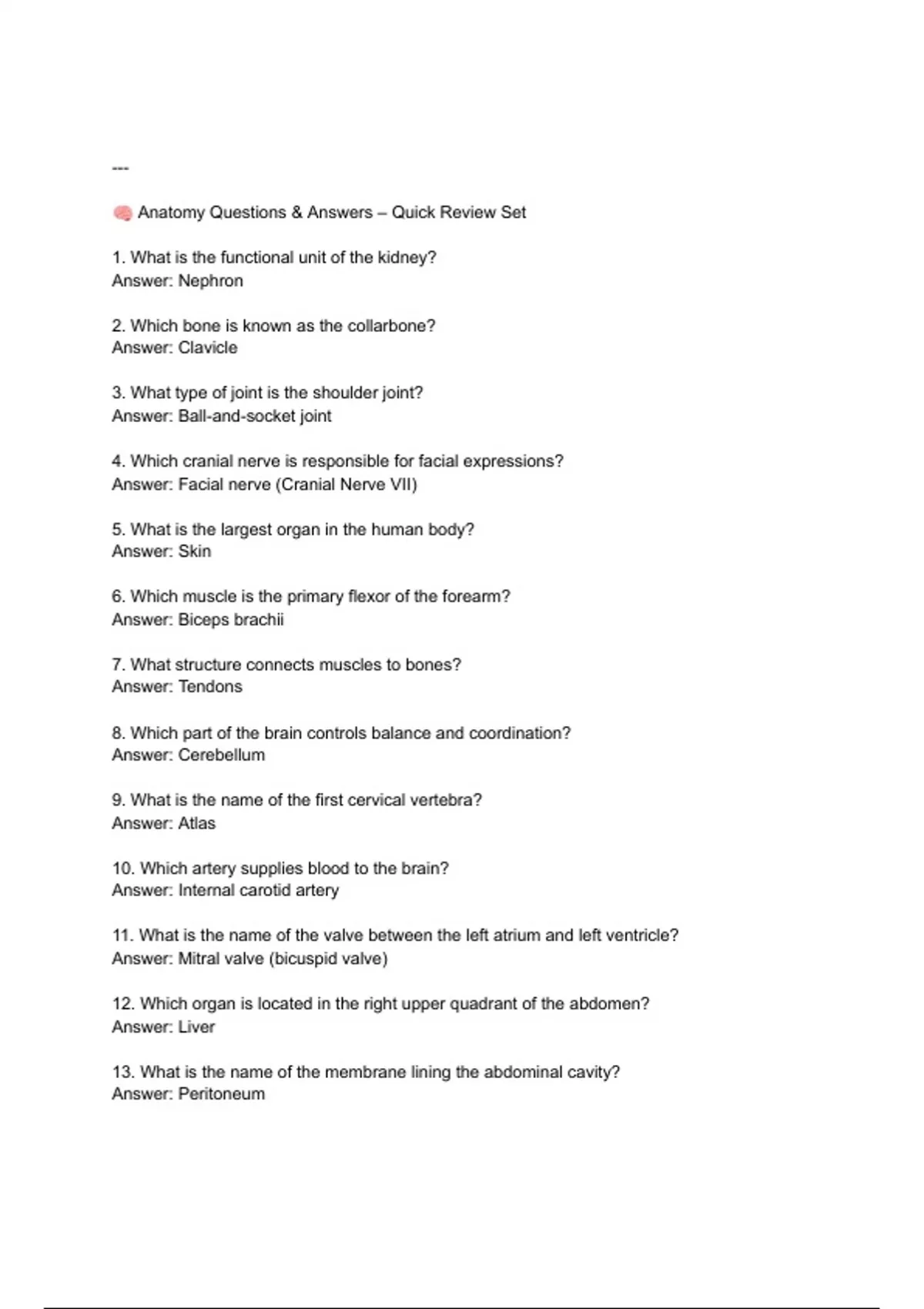 🧠 Anatomy Questions & Answers – Quick Review Set