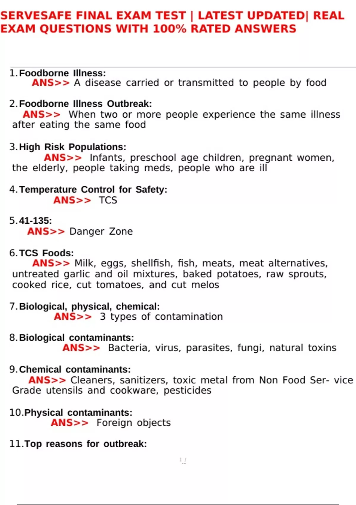 ,SERVESAFE FINAL EXAM TEST | LATEST UPDATED| REAL